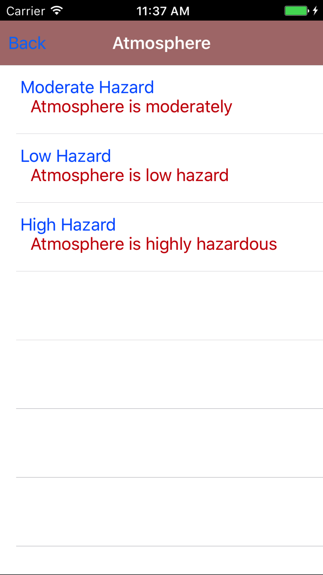 - Tap the desired atmosphere to select it or tap Back button in the top left corner to leave the Atmosphere field unchanged.