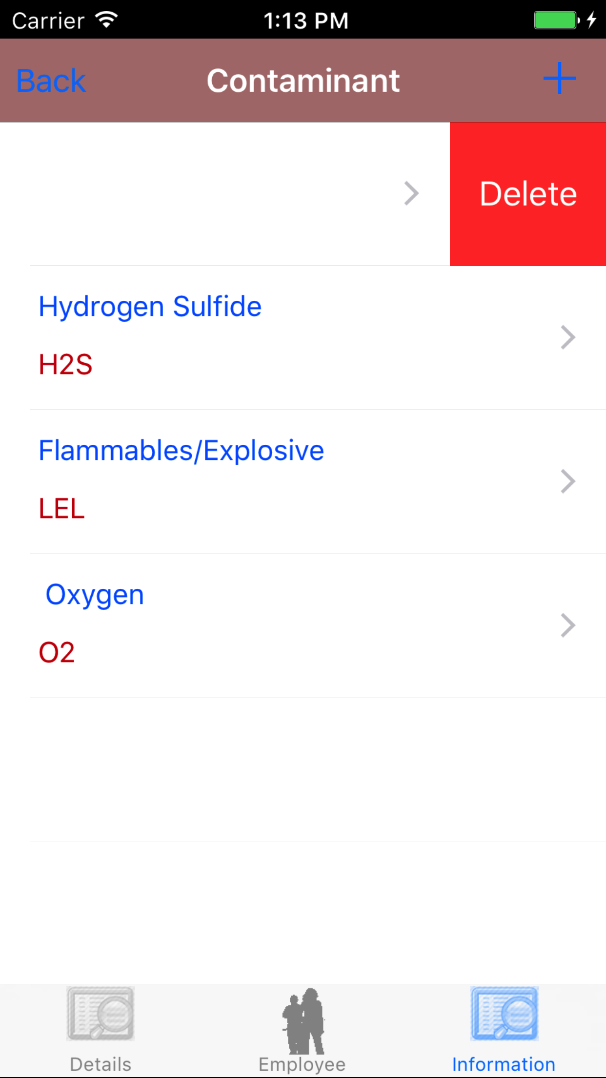- Swipe from the right edge to the left to bring up the delete button for the confined space entry report.