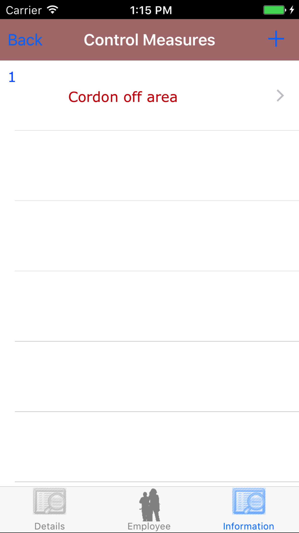 - Tap the + icon in the top right corner to open the Add Control Measure screen.
