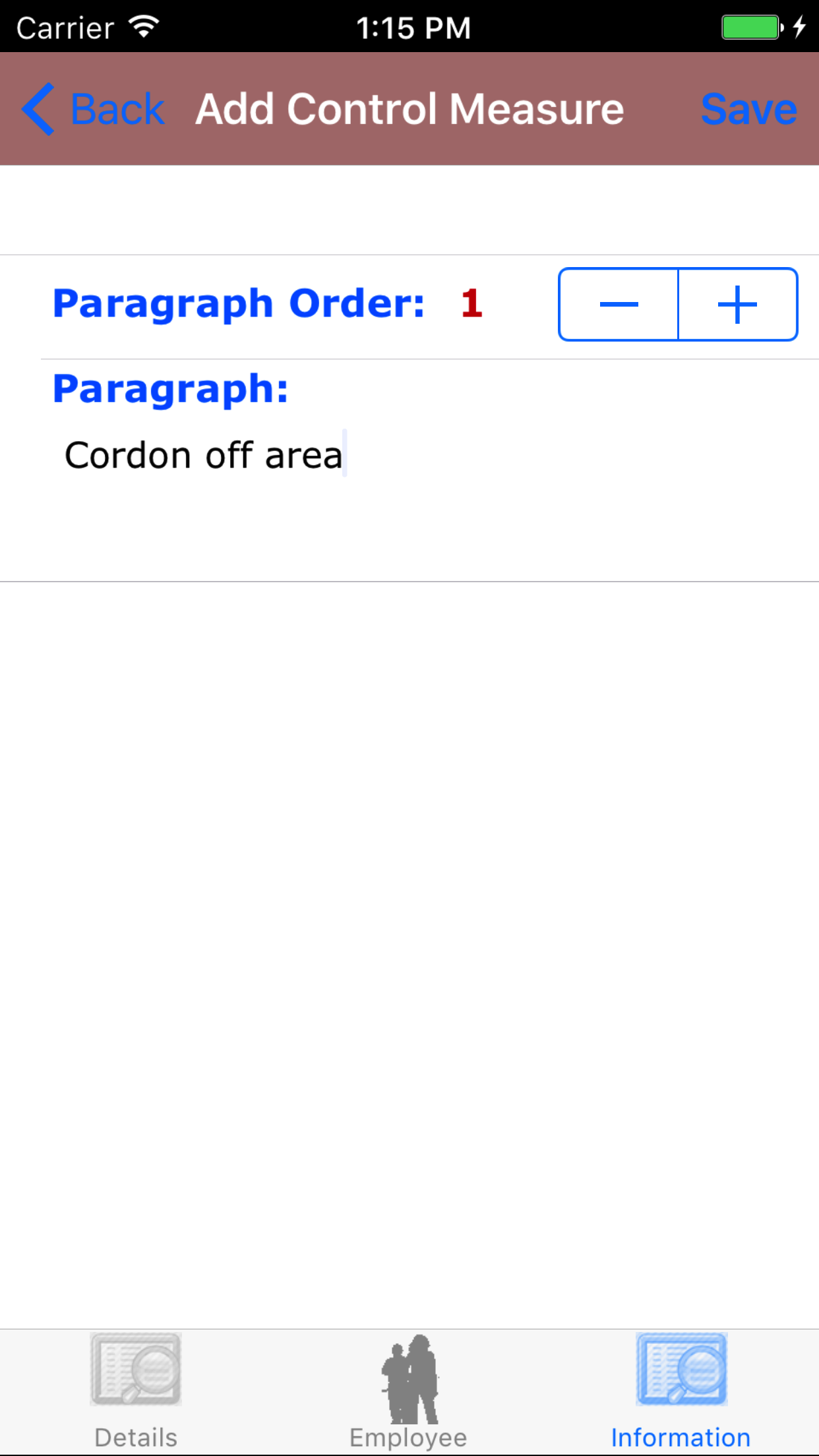 - Paragraph: Enter the description of the control measure.Paragraph is a required field. The character limit of this field is 500 characters.
