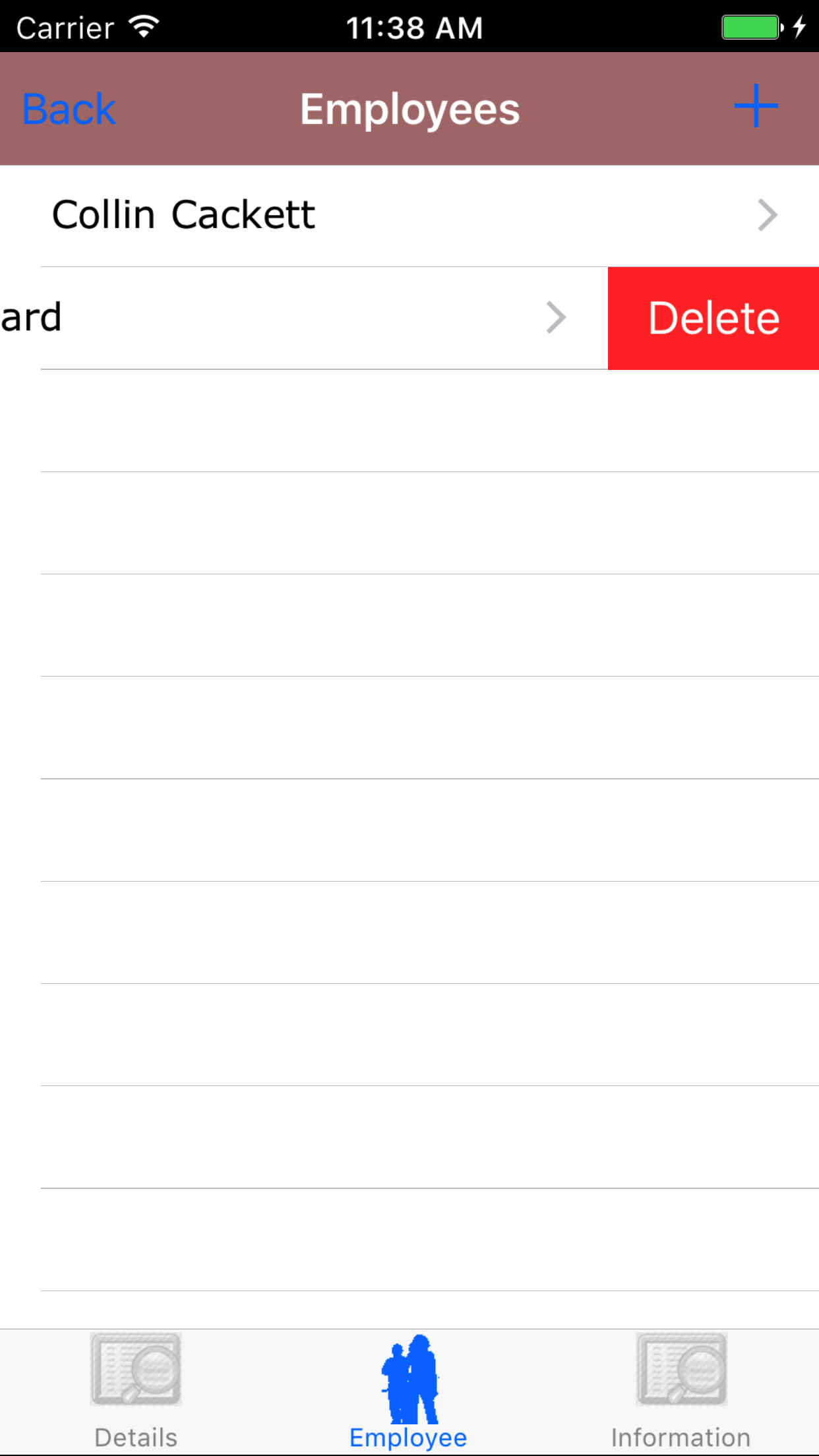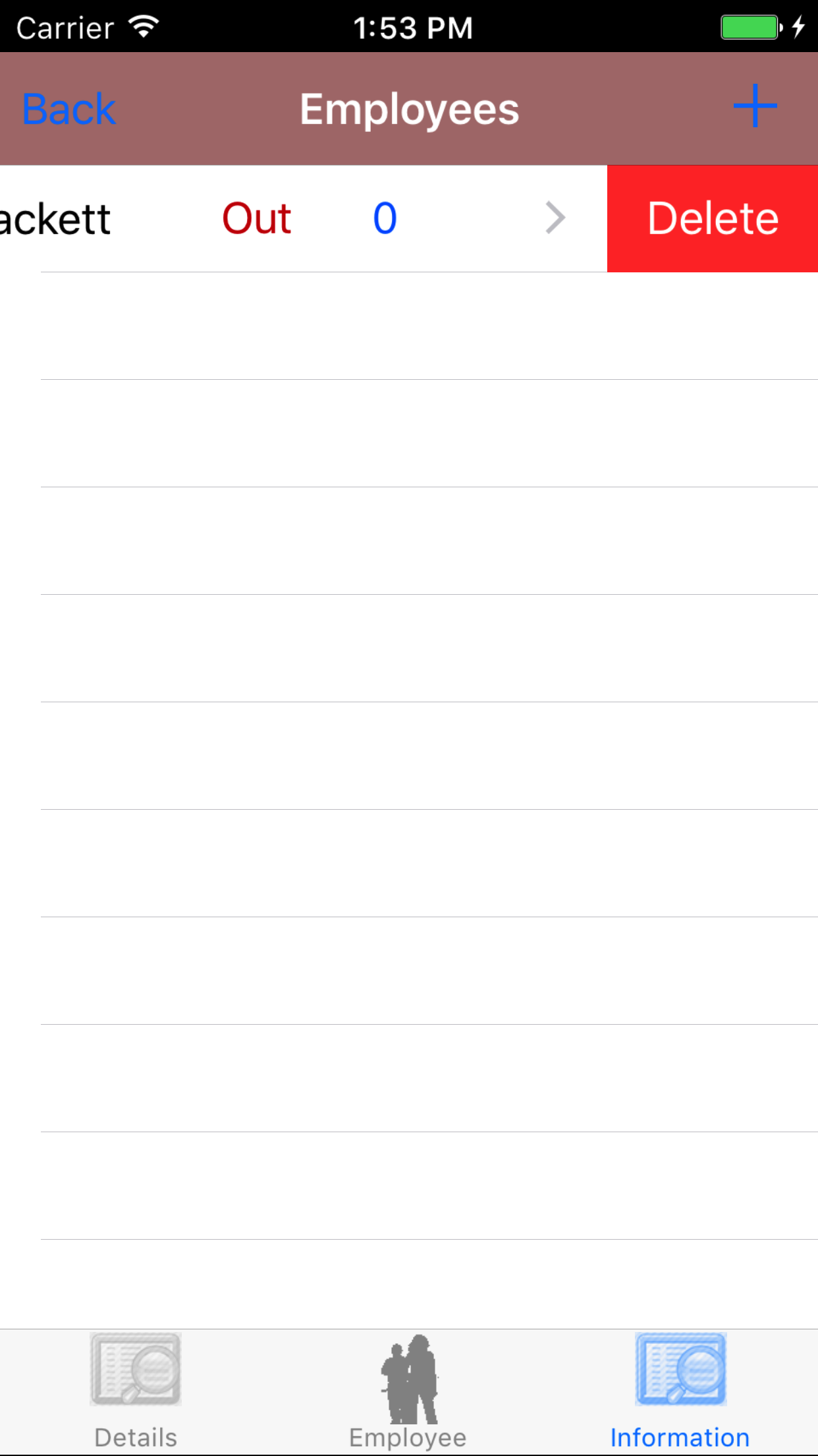 - Swipe from the right edge to the left to bring up the delete button for the employee entry log.