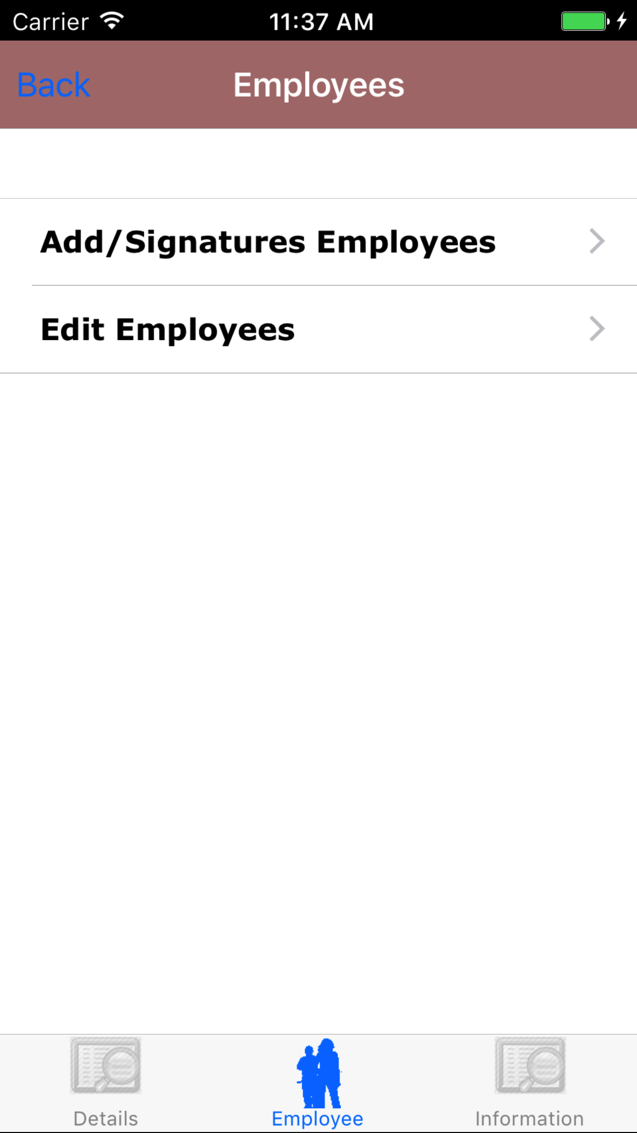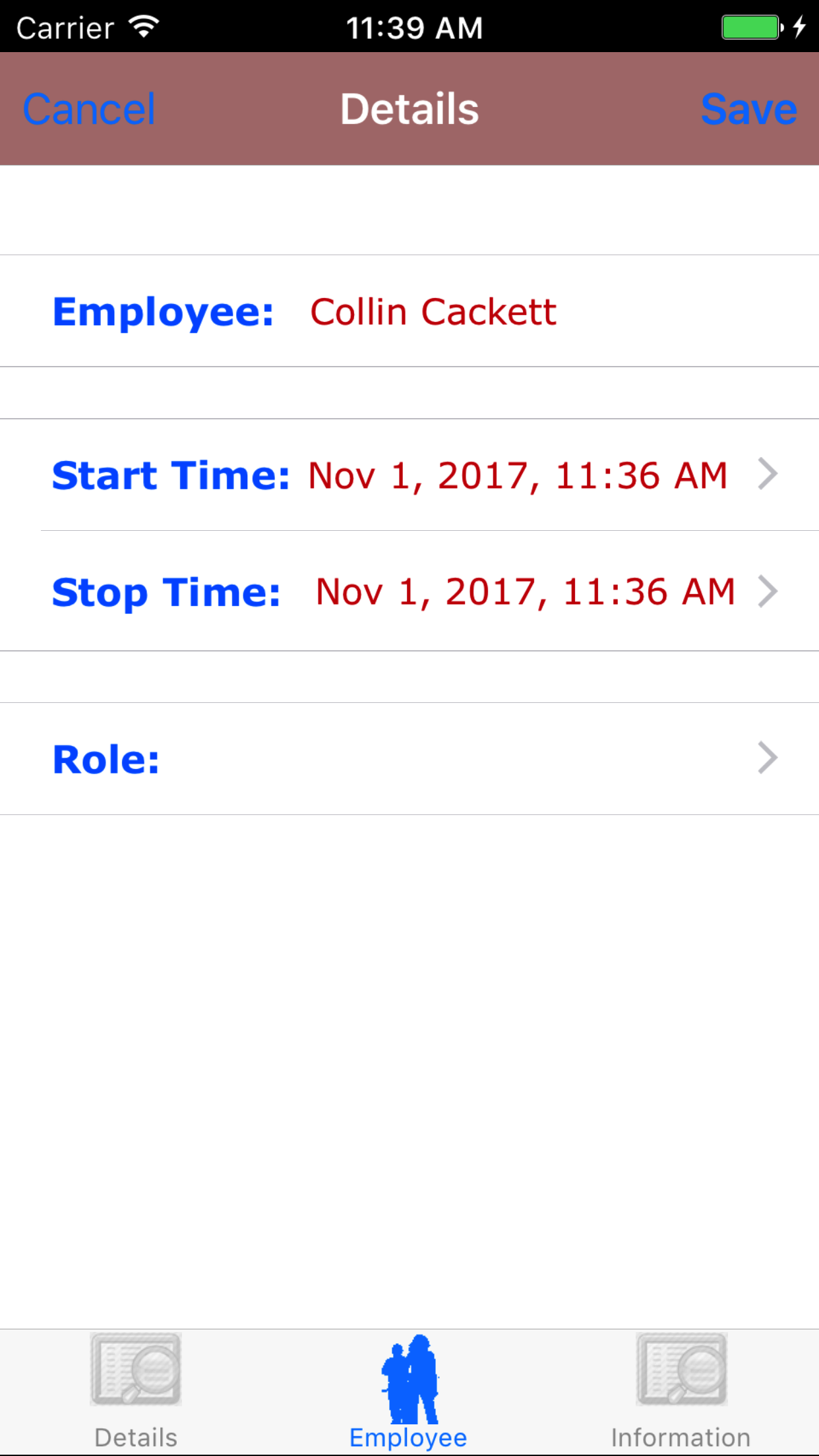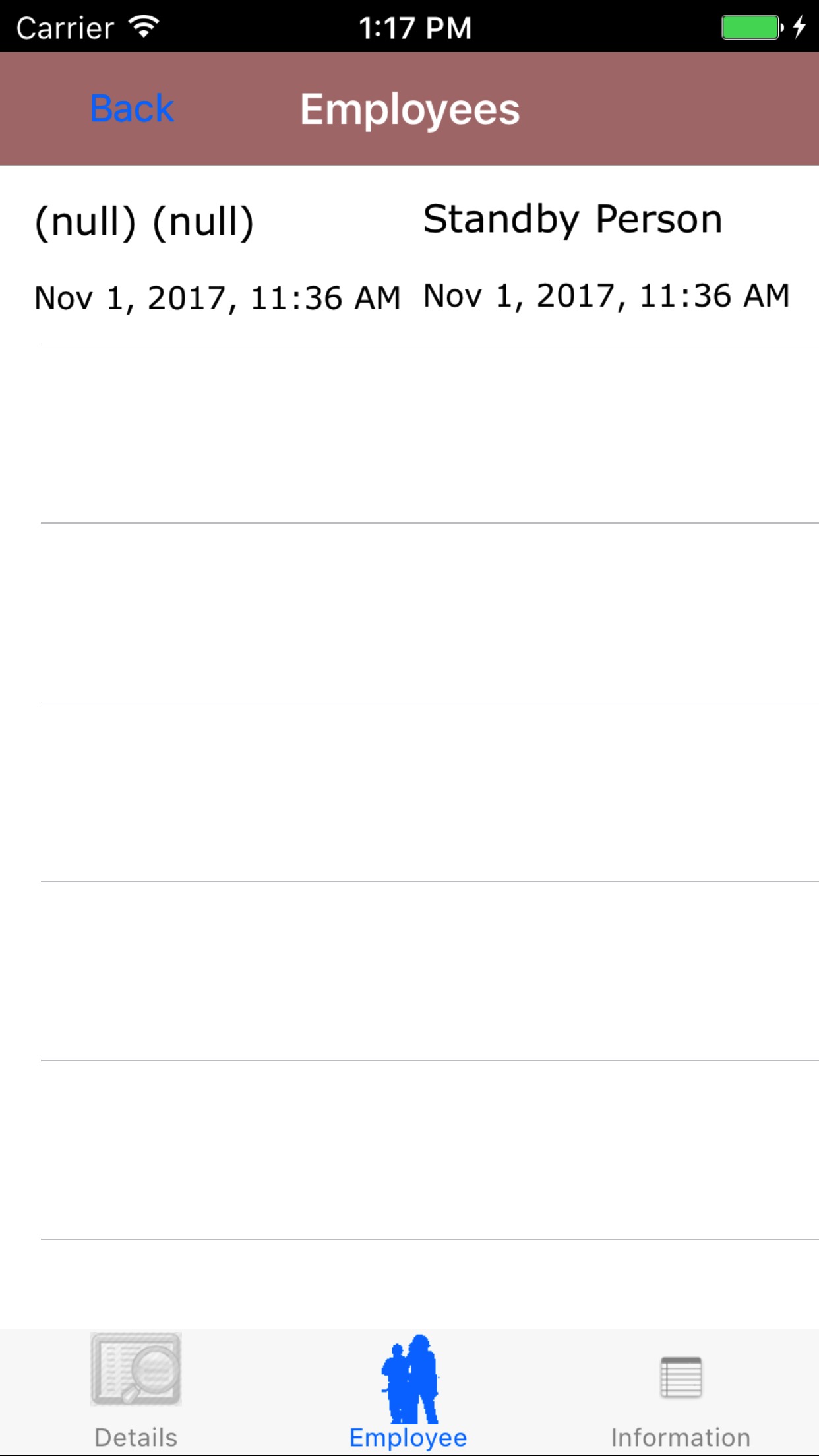 - Tap the second tab, the Confined Space Employee’s tab of the History view. This loads with the employee’s names and their roles.
