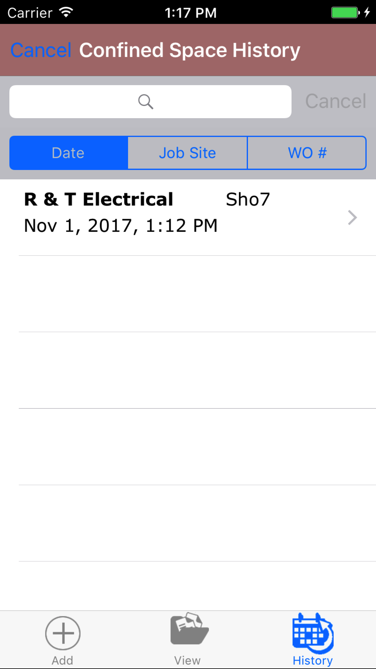 After Confined Space Entry Reports have been closed out, they will be available to look at through the History view on the iPhone Application