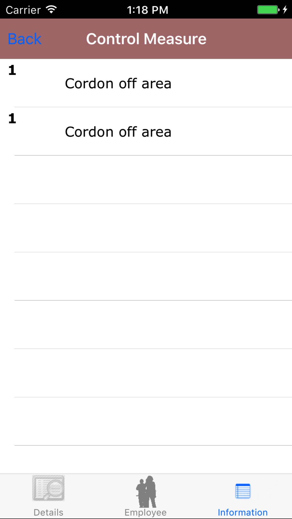 - Tap the Control Measure button to load the list of control measures added to the confined space entry report.
