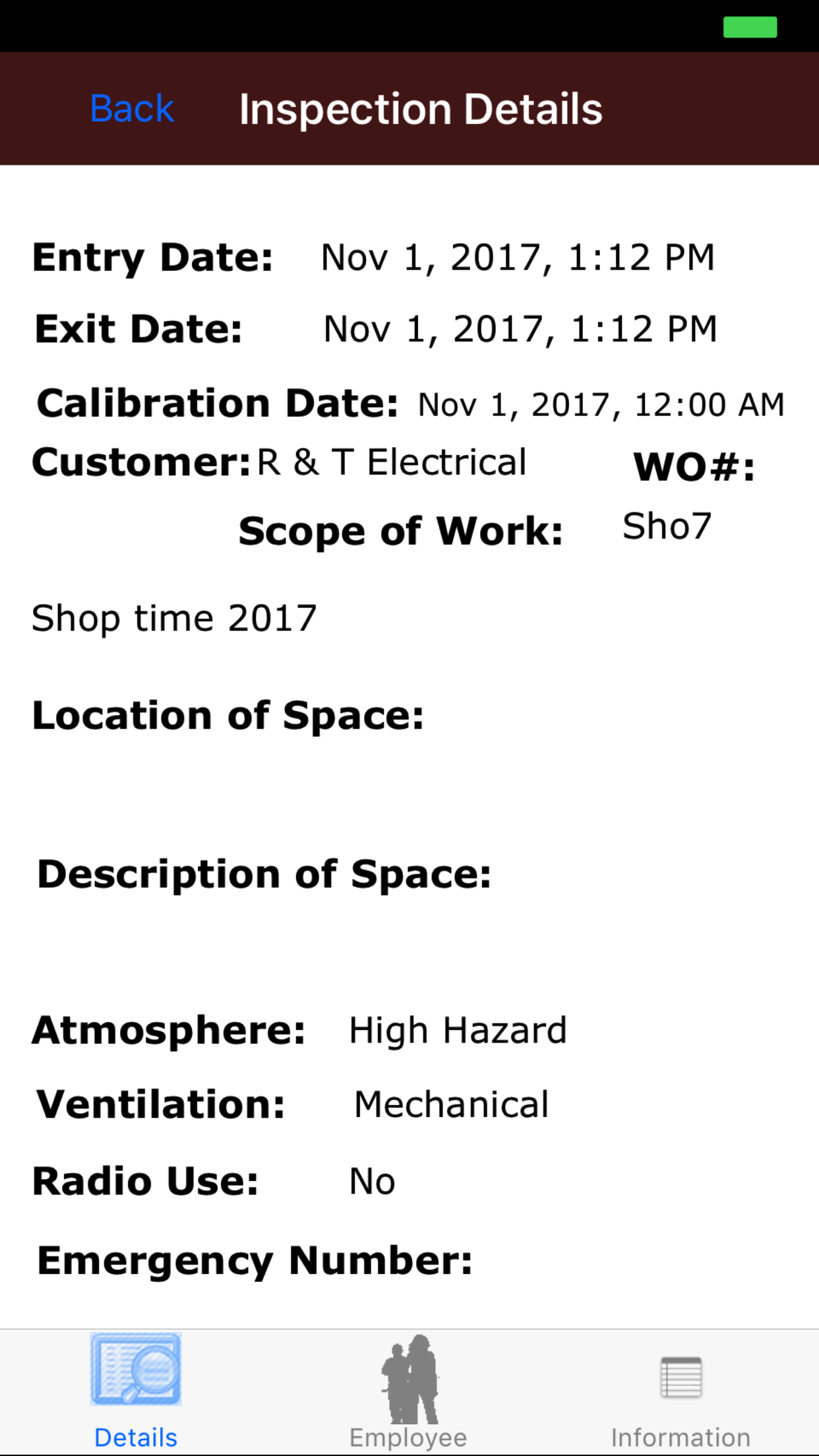 - Tap on the Confined Space Entry Report you would like to view. This loads the first tab, the Confined Space Entry Report details tab of the History view.