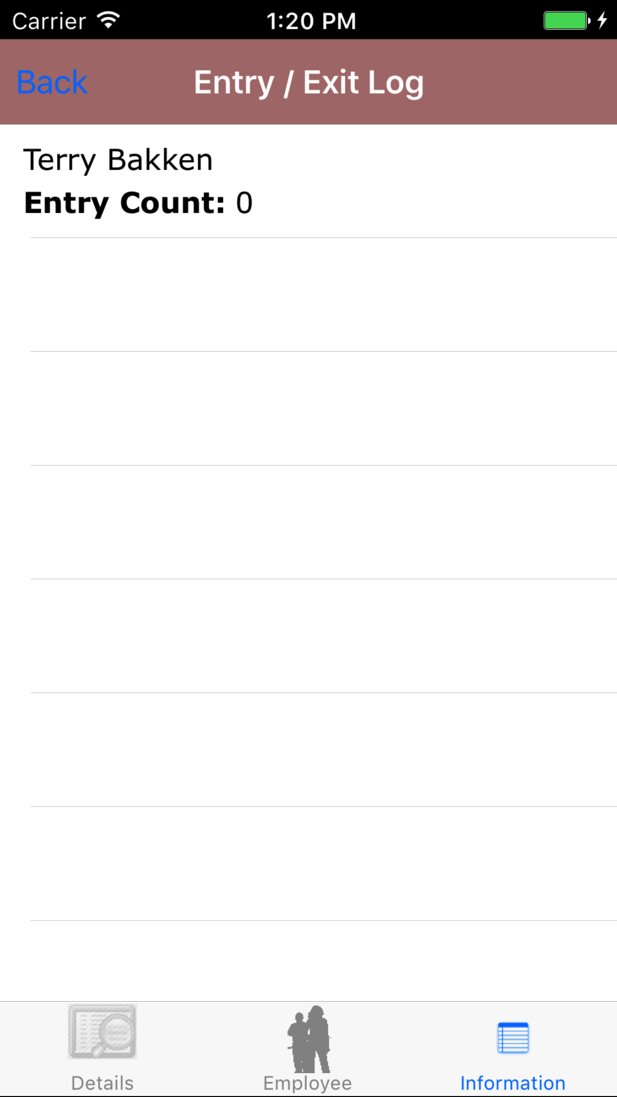 - Tap the Add Entry Count button, to changed the status of the employee. Tapping the add entry count will increase the count.