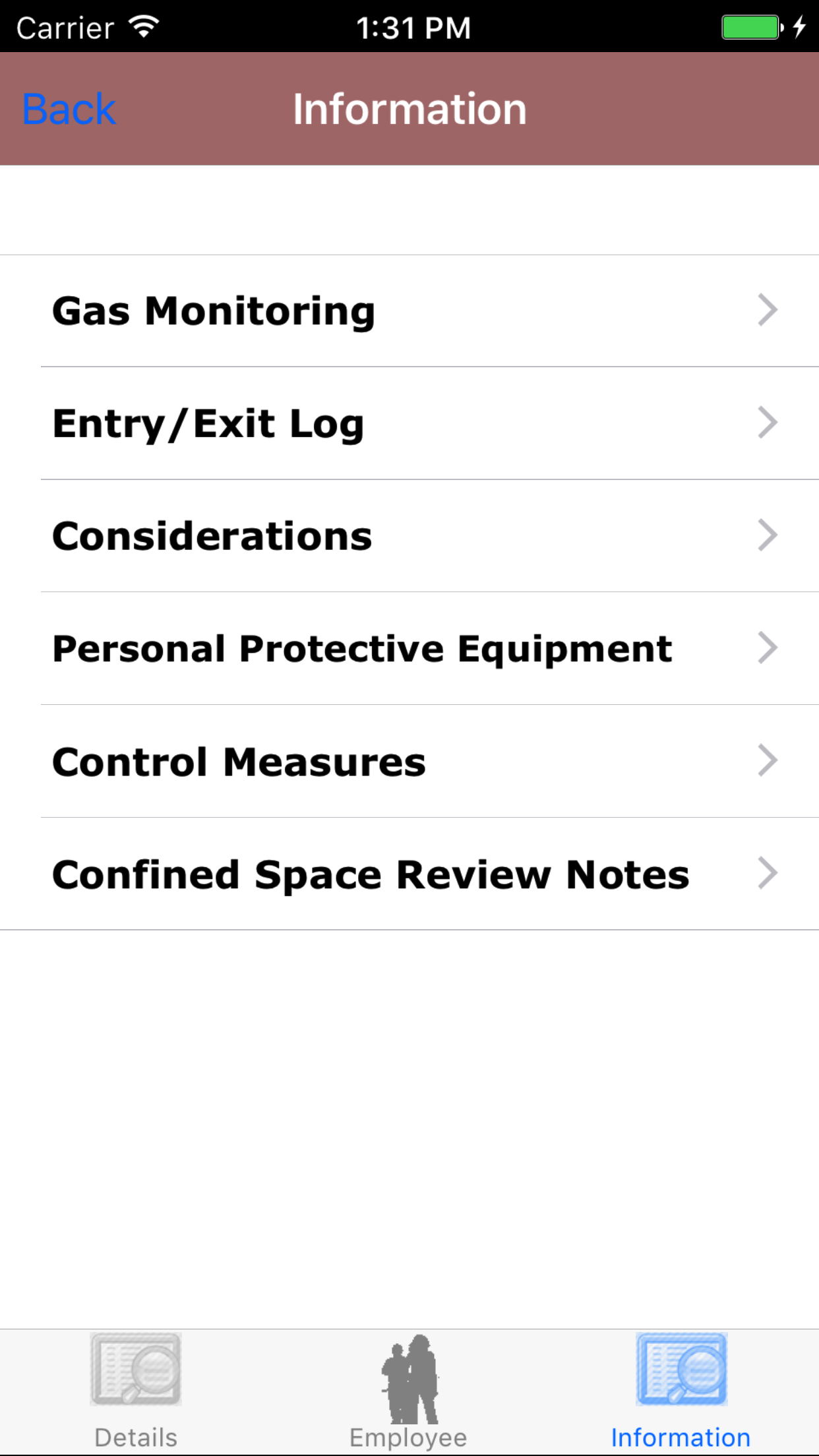 - Tap the Considerations button to load the list of considerations that should be considered during the entry to the confined space.