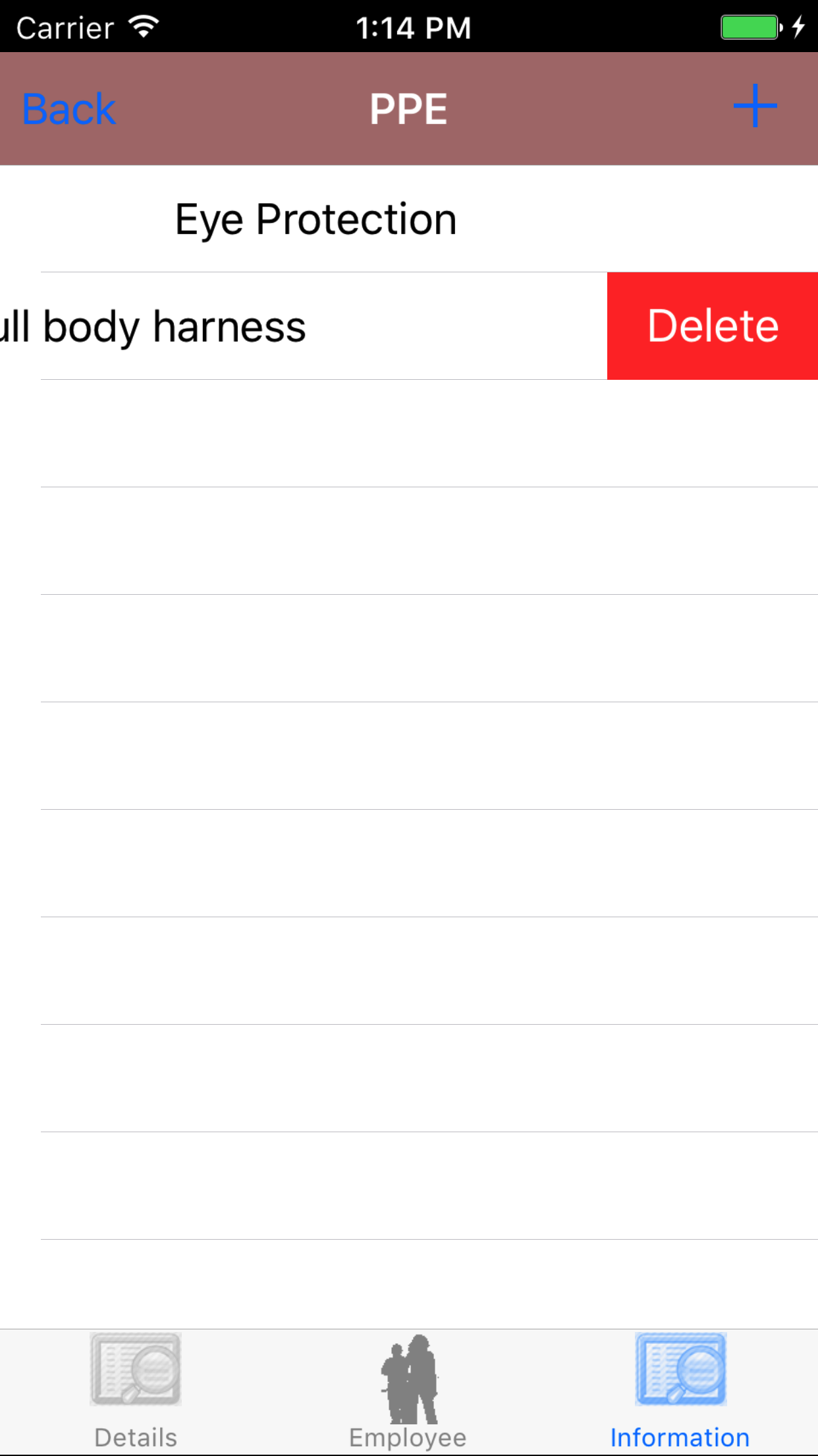 - Tap the + icon in the top right corner to open the Personal Protective Equipment list.