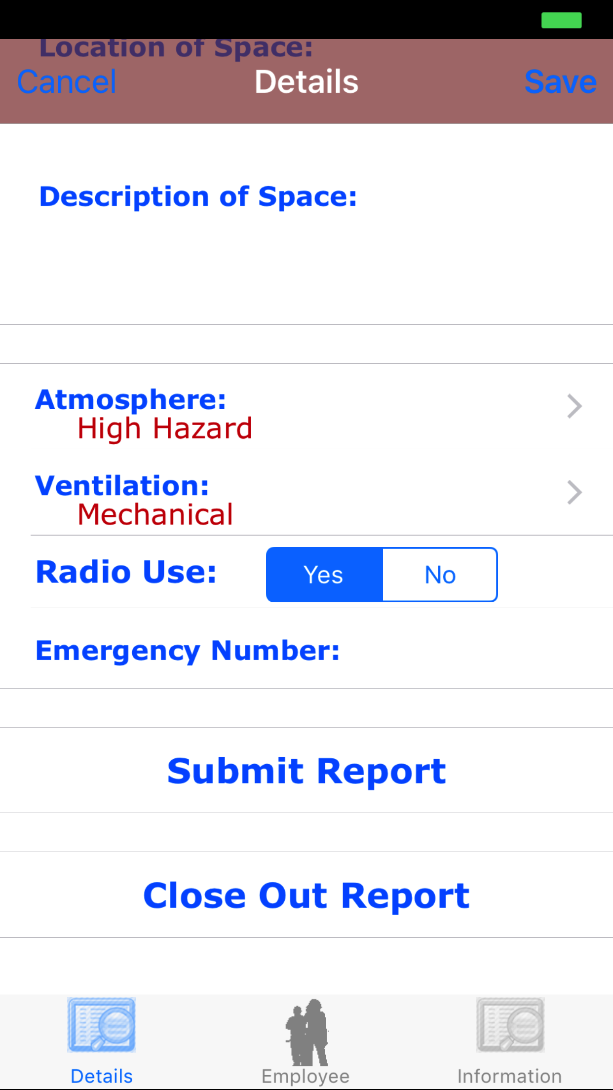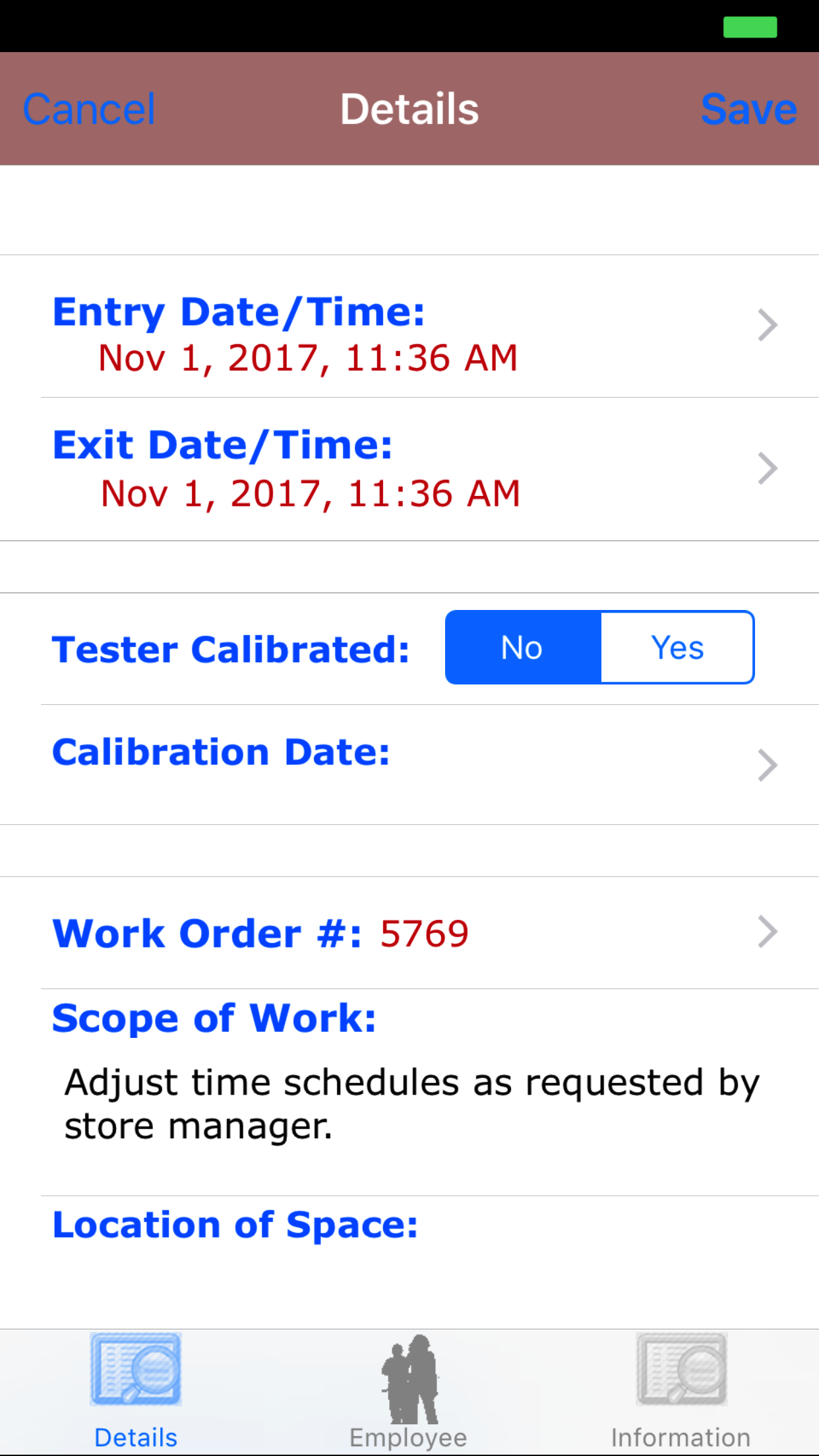 - Tap Save in the top right corner to save any changes to the Confined Space Entry Details.