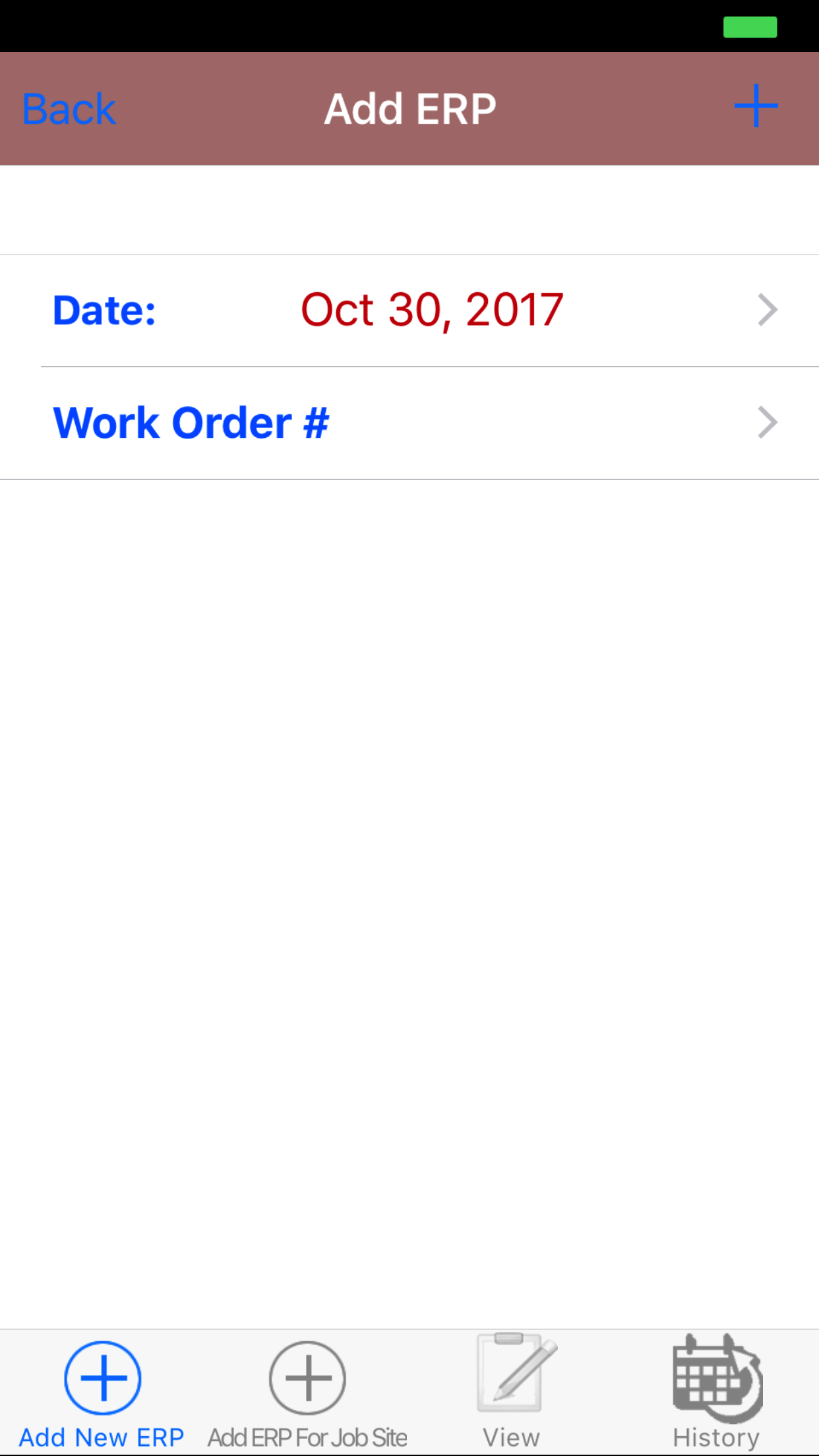- Tap the desired work order to select it or tap Back in the top left corner to leave the Work Order # field unchanged and return to the Add Emergency Response Plan screen.