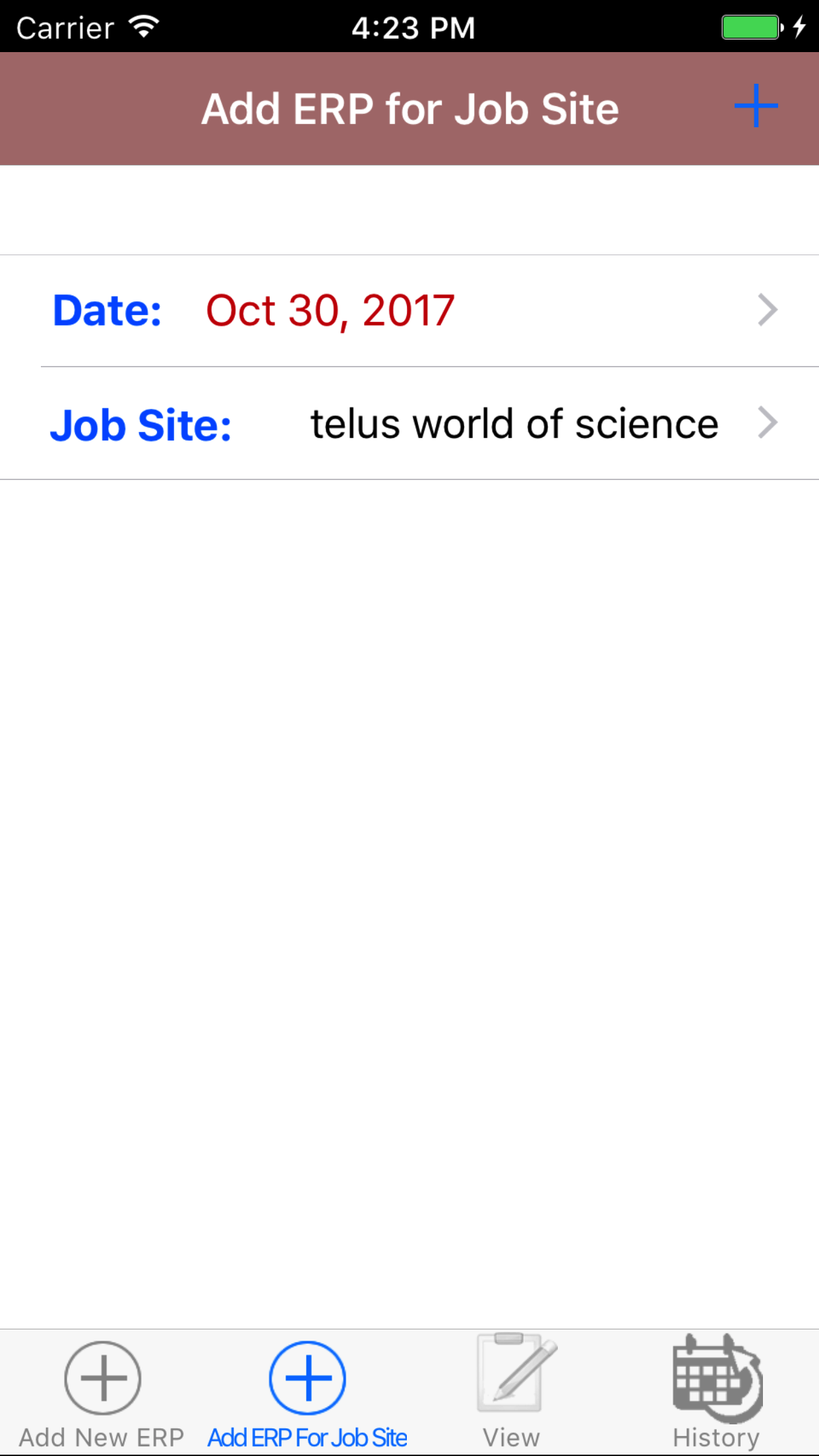 - Then tap on the second tab on the bottom of the screen, this opens the Add Emergency Response Plan For Job Site entry screen.