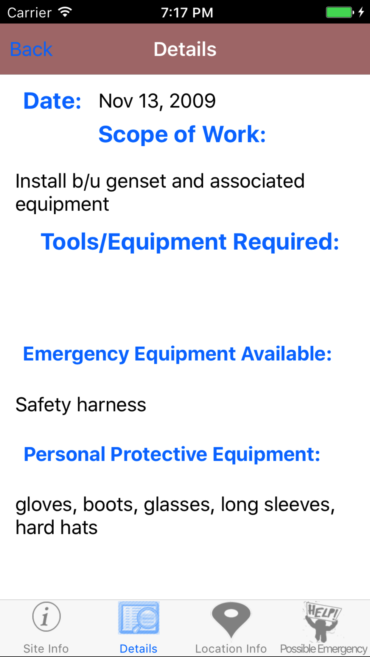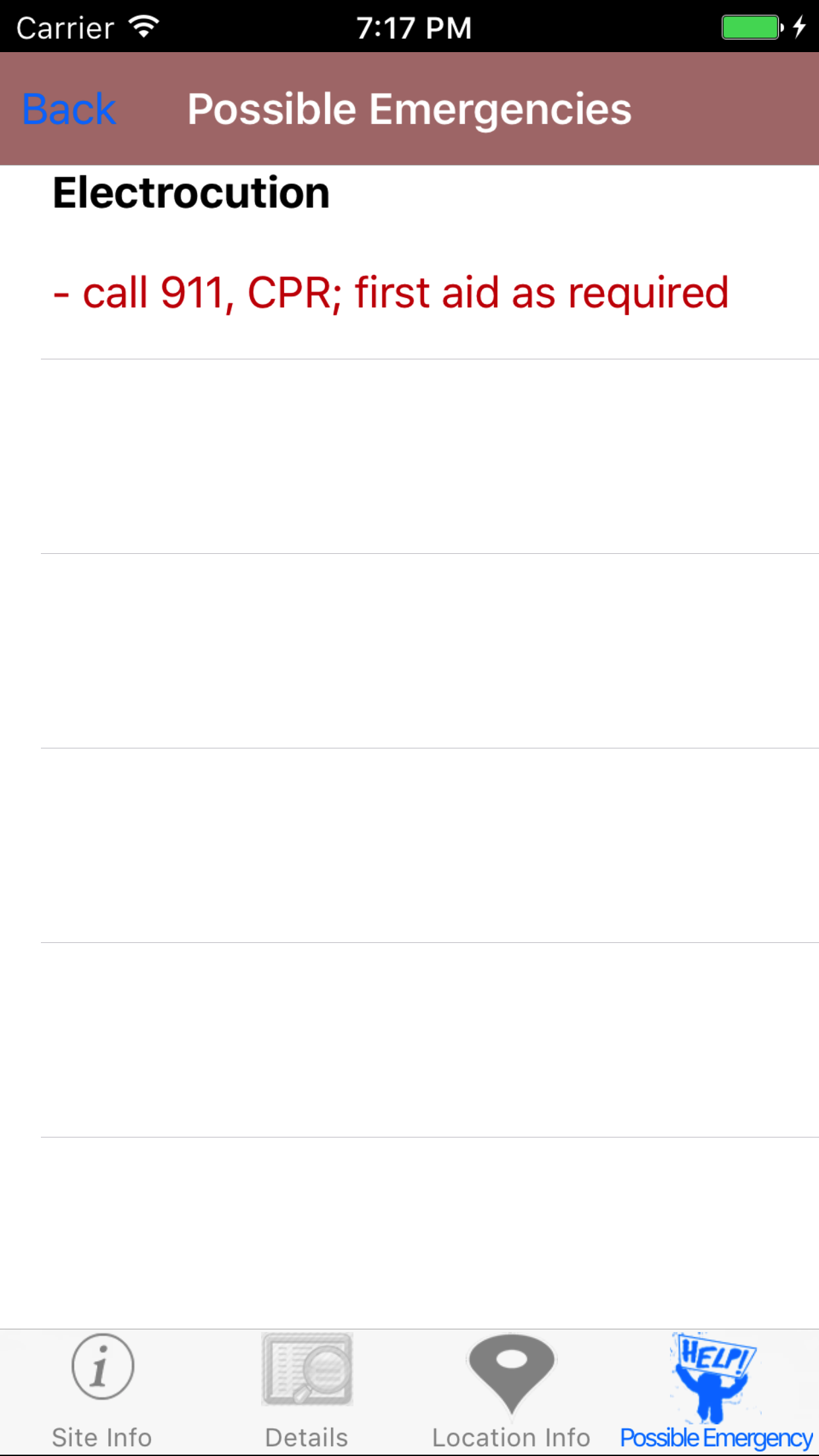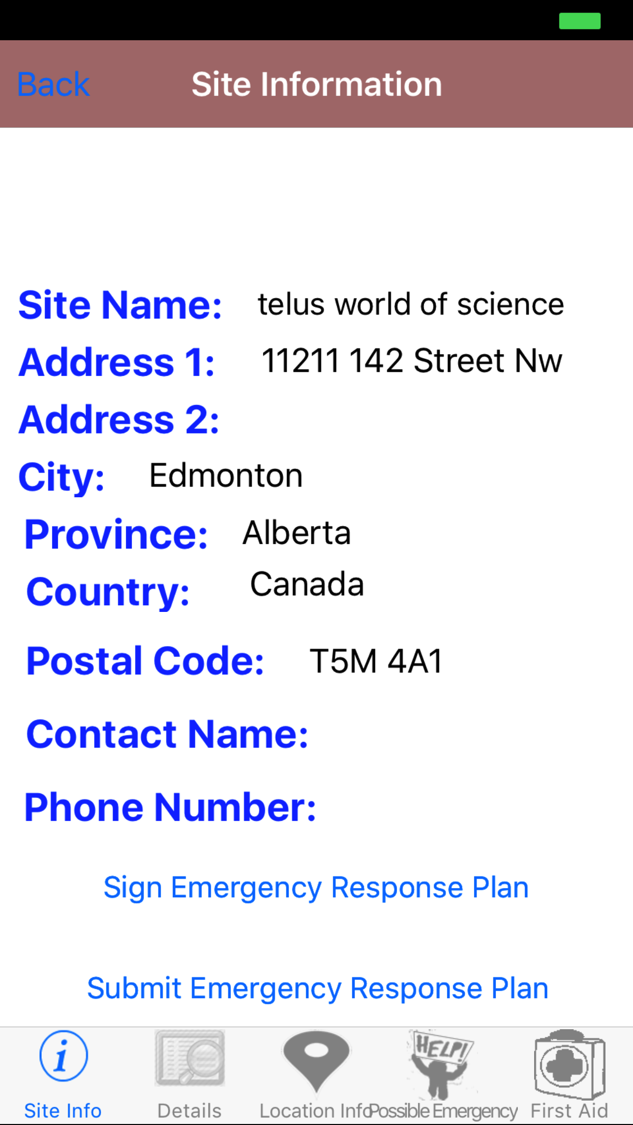 - Tap the emergency response plan you would like to view, this loads the site information page of the history section.