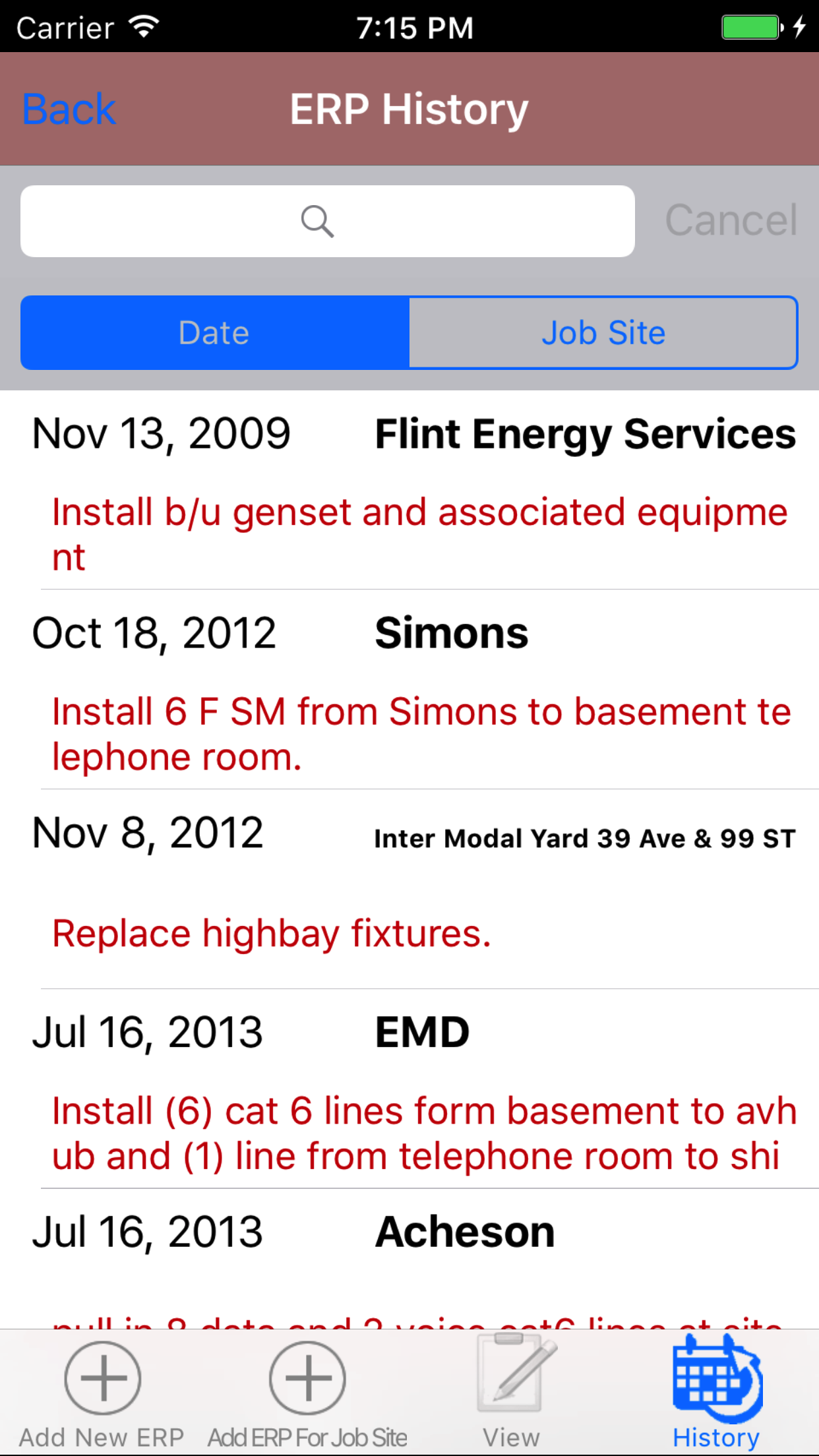 To Search Job Sites: Pull down on the list view, the search is defaulted to search by job site name.