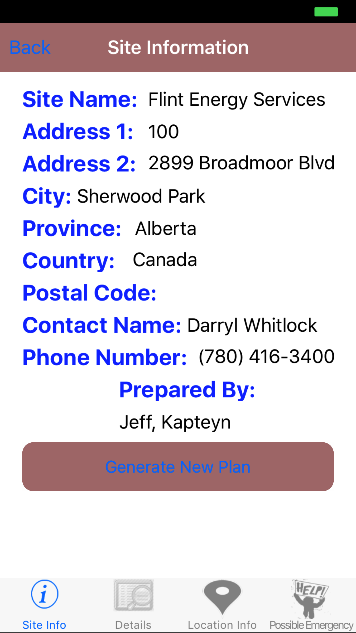 - Tap the Generate New Plan button at the bottom of the screen to create a new emergency response plan.