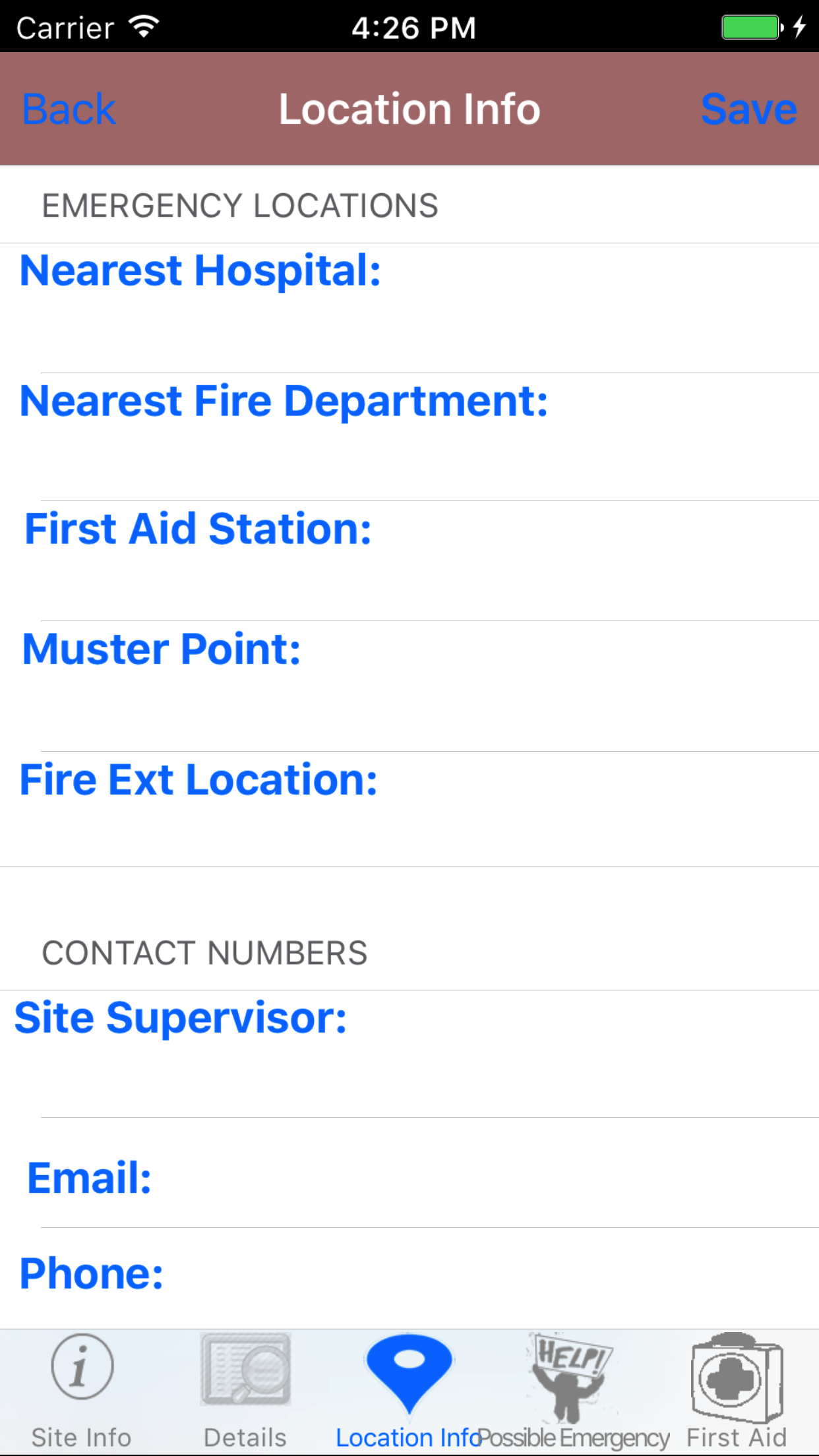 - Tap Save in the top right corner to save any changes to the Emergency Response Plan Location Details.