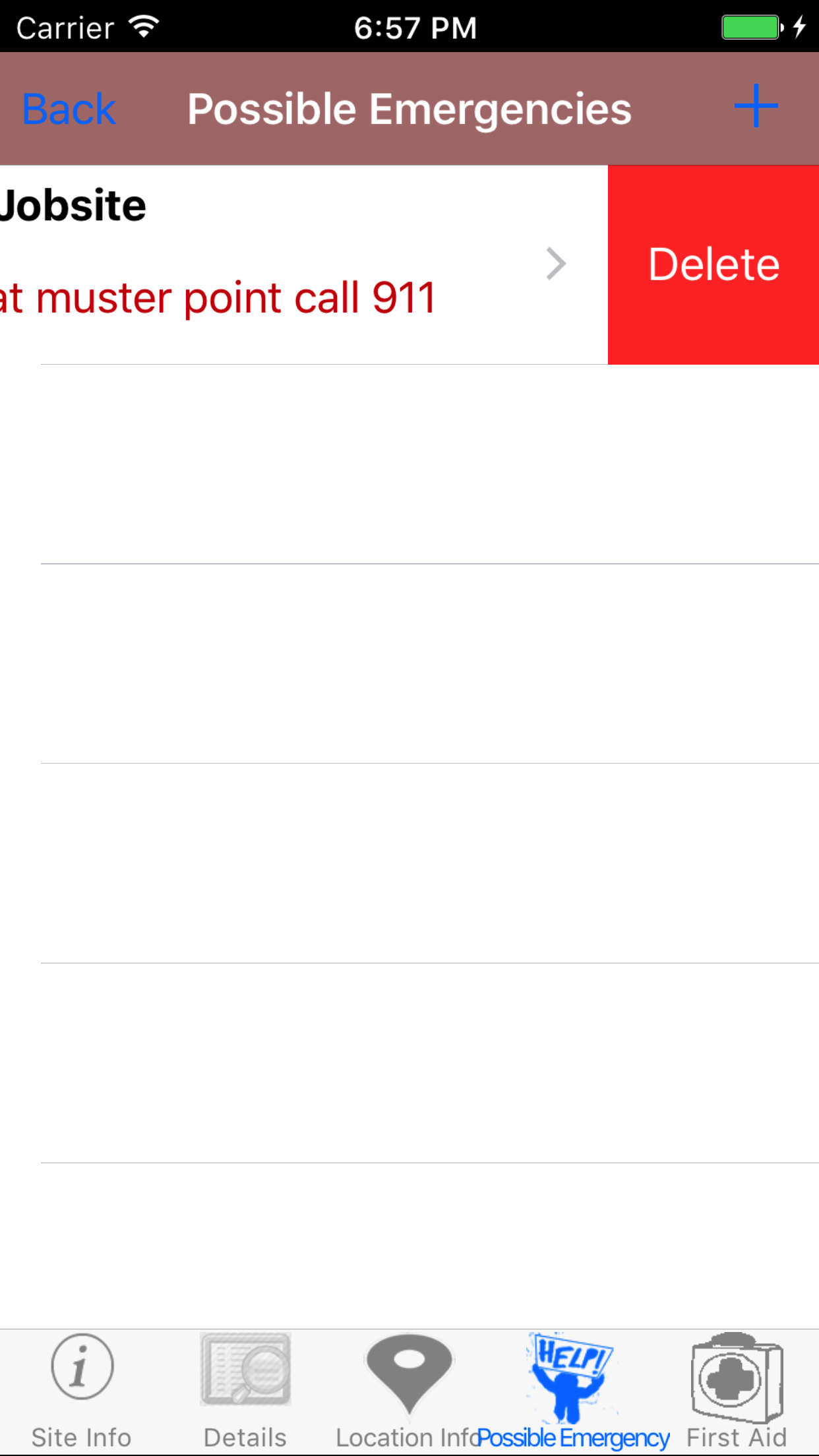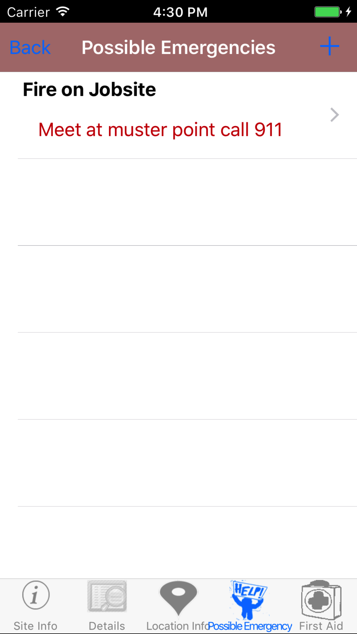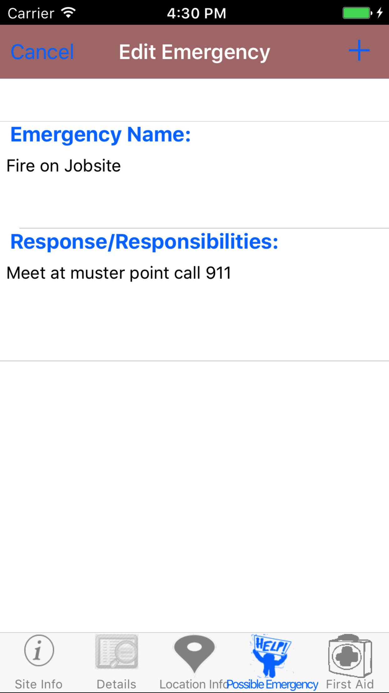 - Tap the + icon in the top right corner to open the Add Possible Emergency screen.