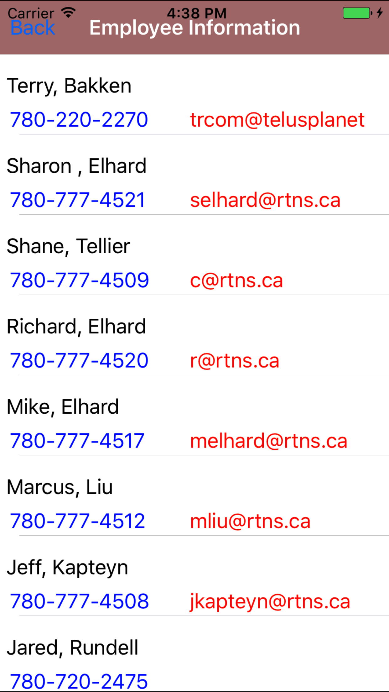 The employee information section in the iPhone application allows field staff to quickly view a companies list of employees and if your company has