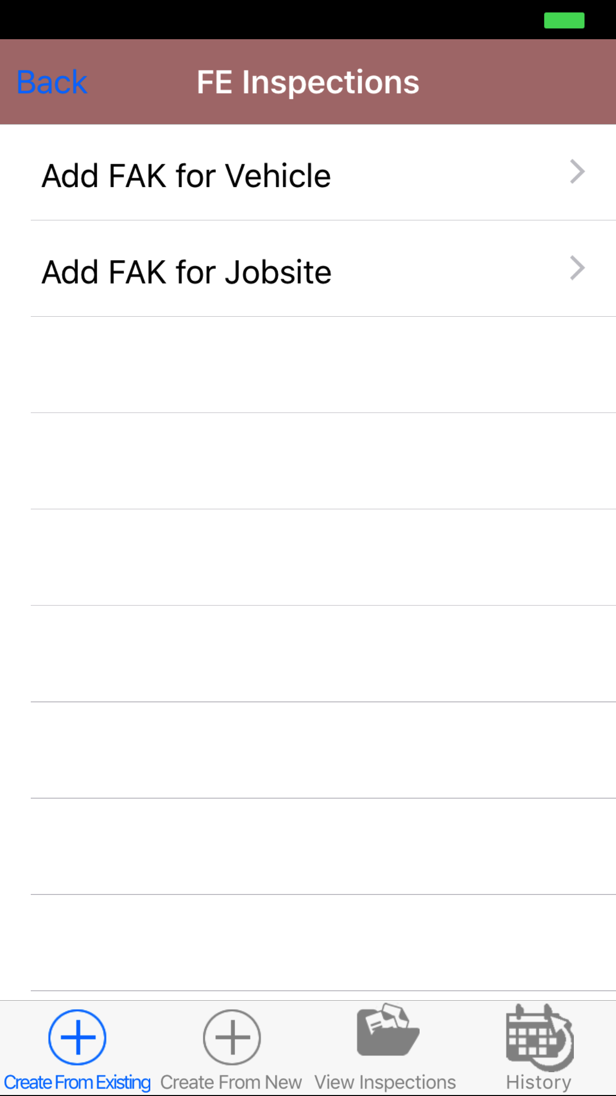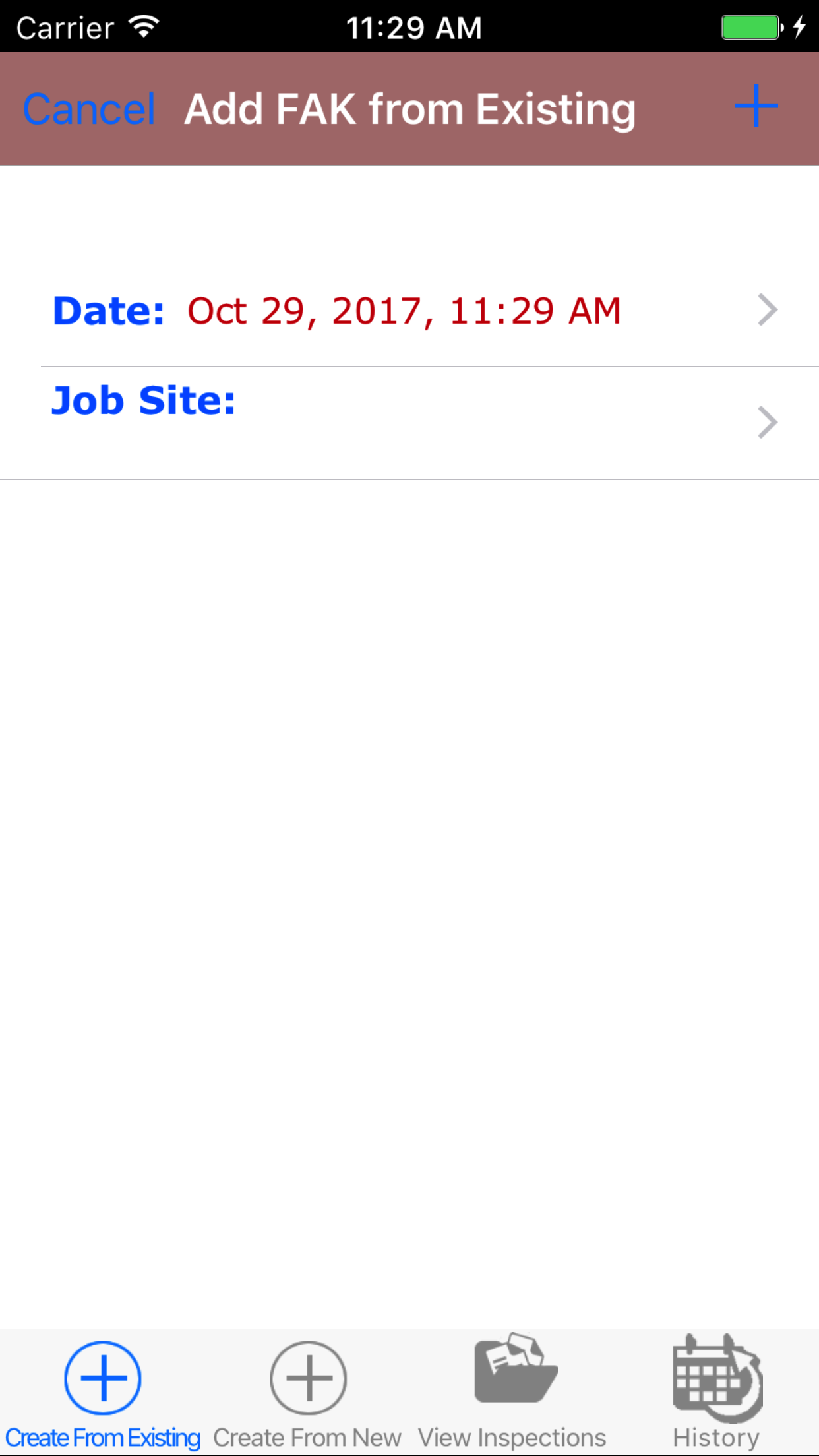 - Tap the + icon in the top right corner to add the First Aid Kit Inspection.