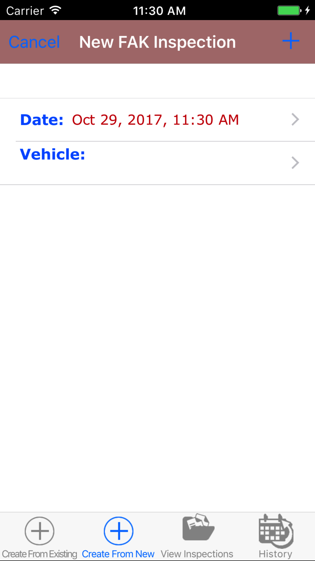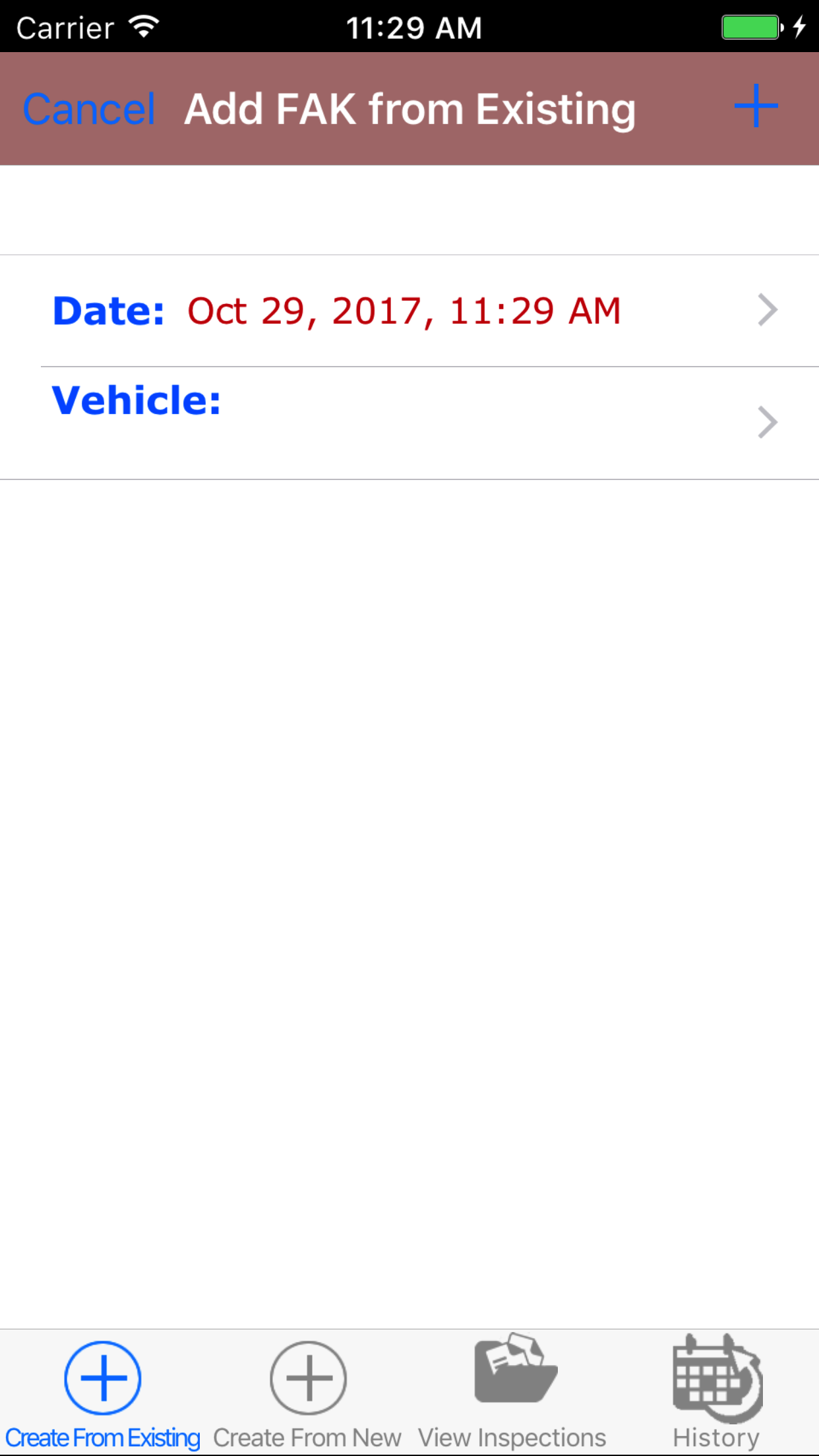 - Return to the Add First Aid Kit Inspection screen by either tapping the appropriate vehicle or tapping Cancel in the top left corner to leave the First Aid Kit Inspection field unchanged.