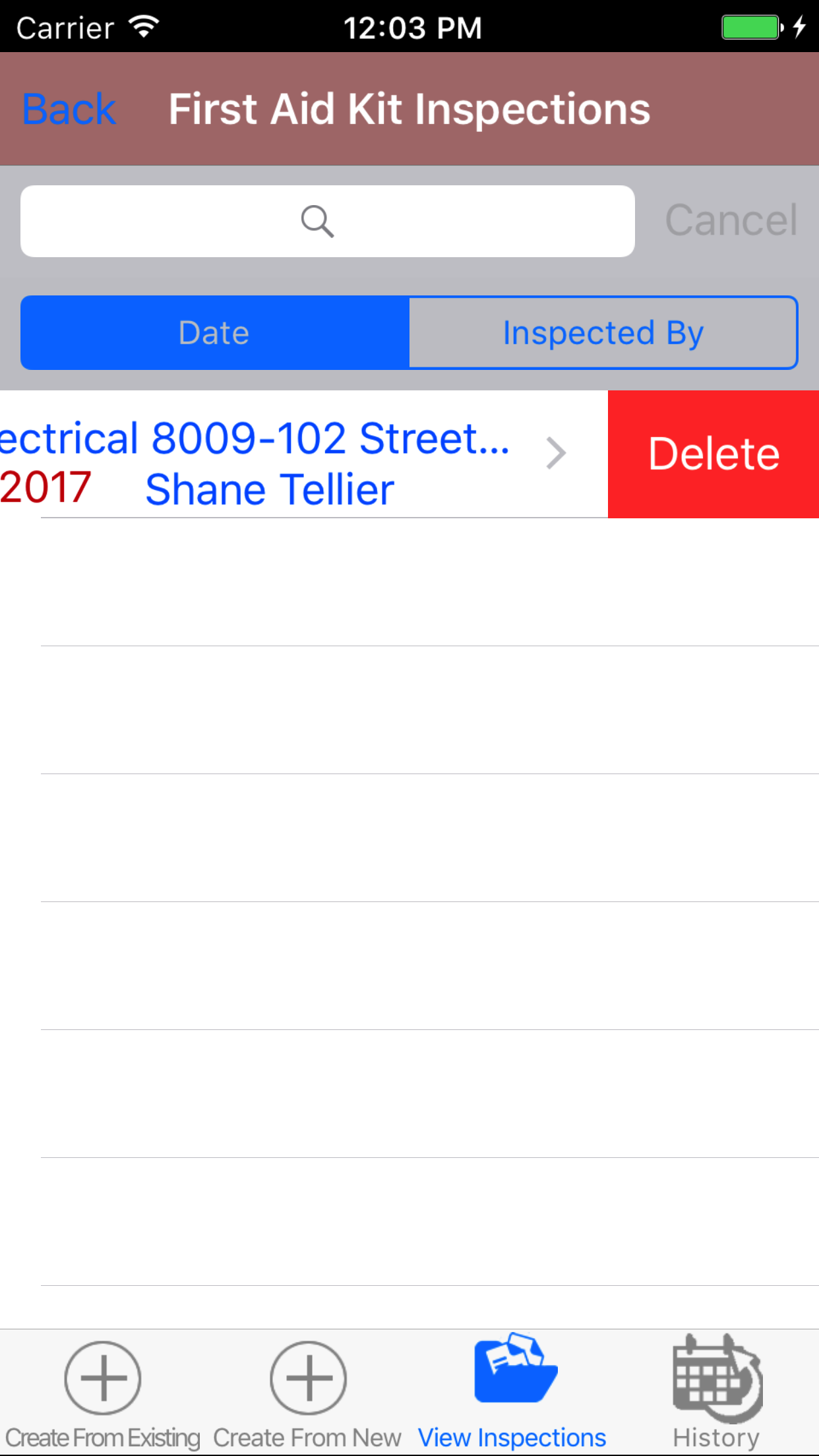 - Tap the Delete button. The first aid kit inspection will be deleted.