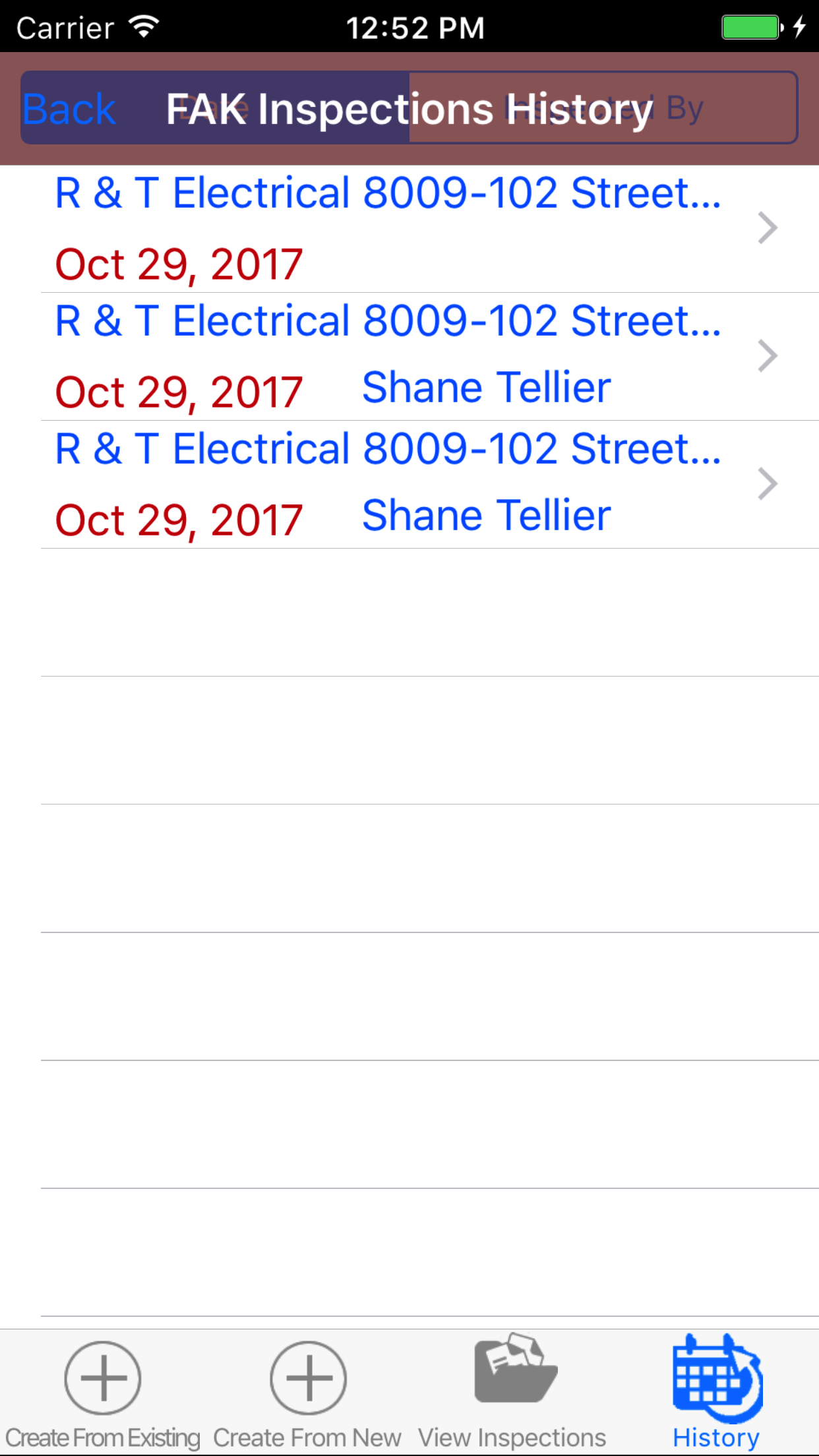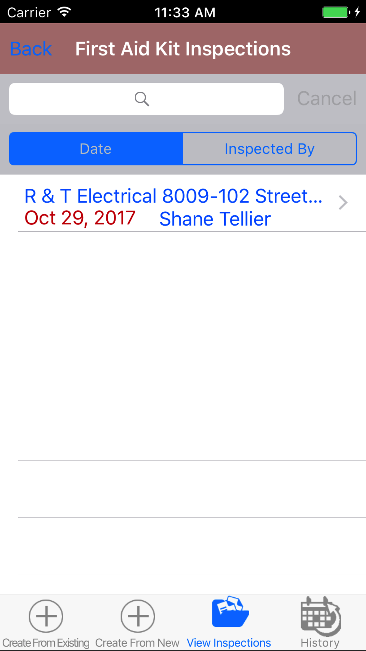 After First Aid Kit Inspections have been closed out, they will be available to look at through the History view on the iPhone Application.