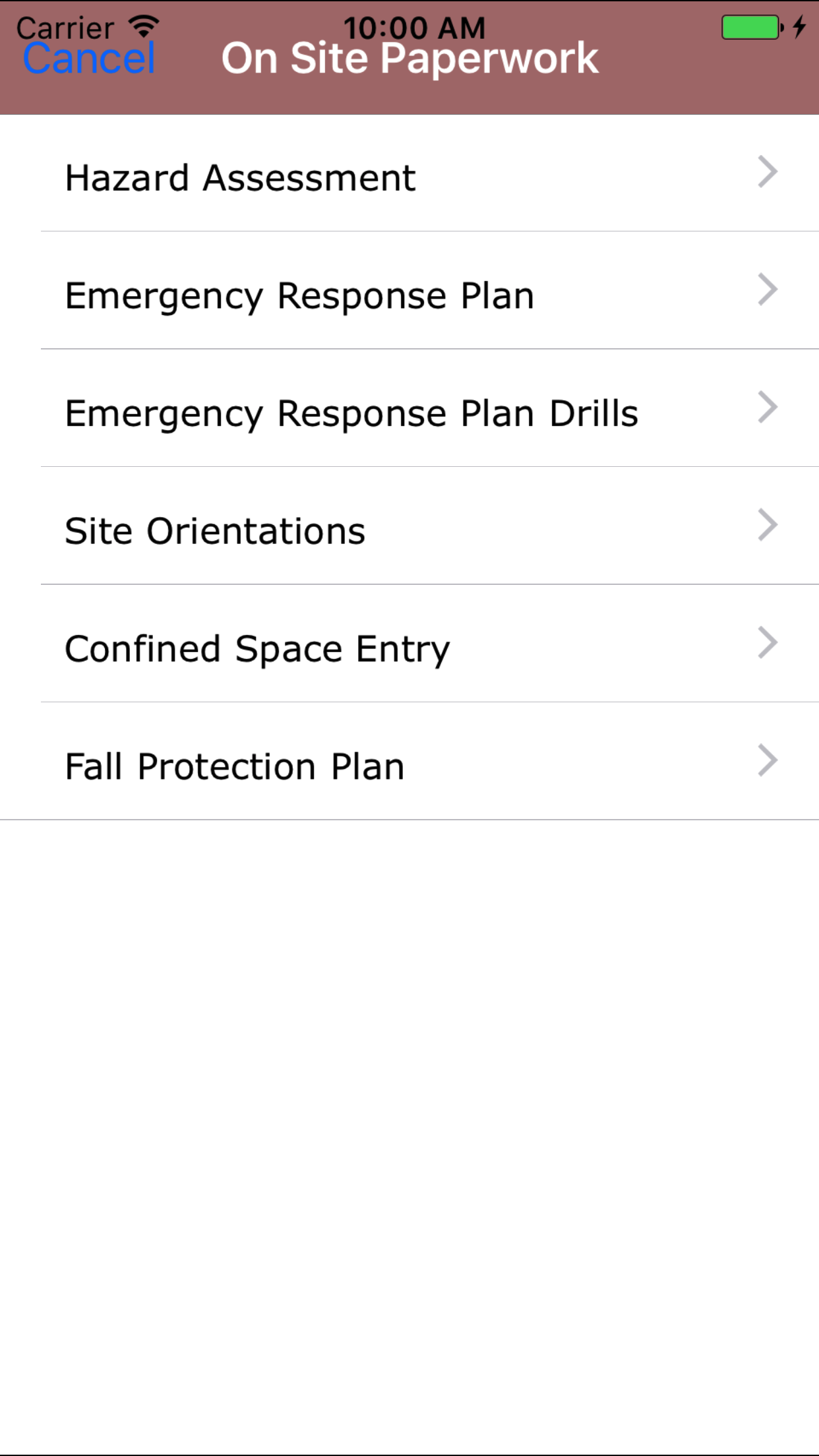 - From the Main Menu screen, tap the On Site Paperwork button.