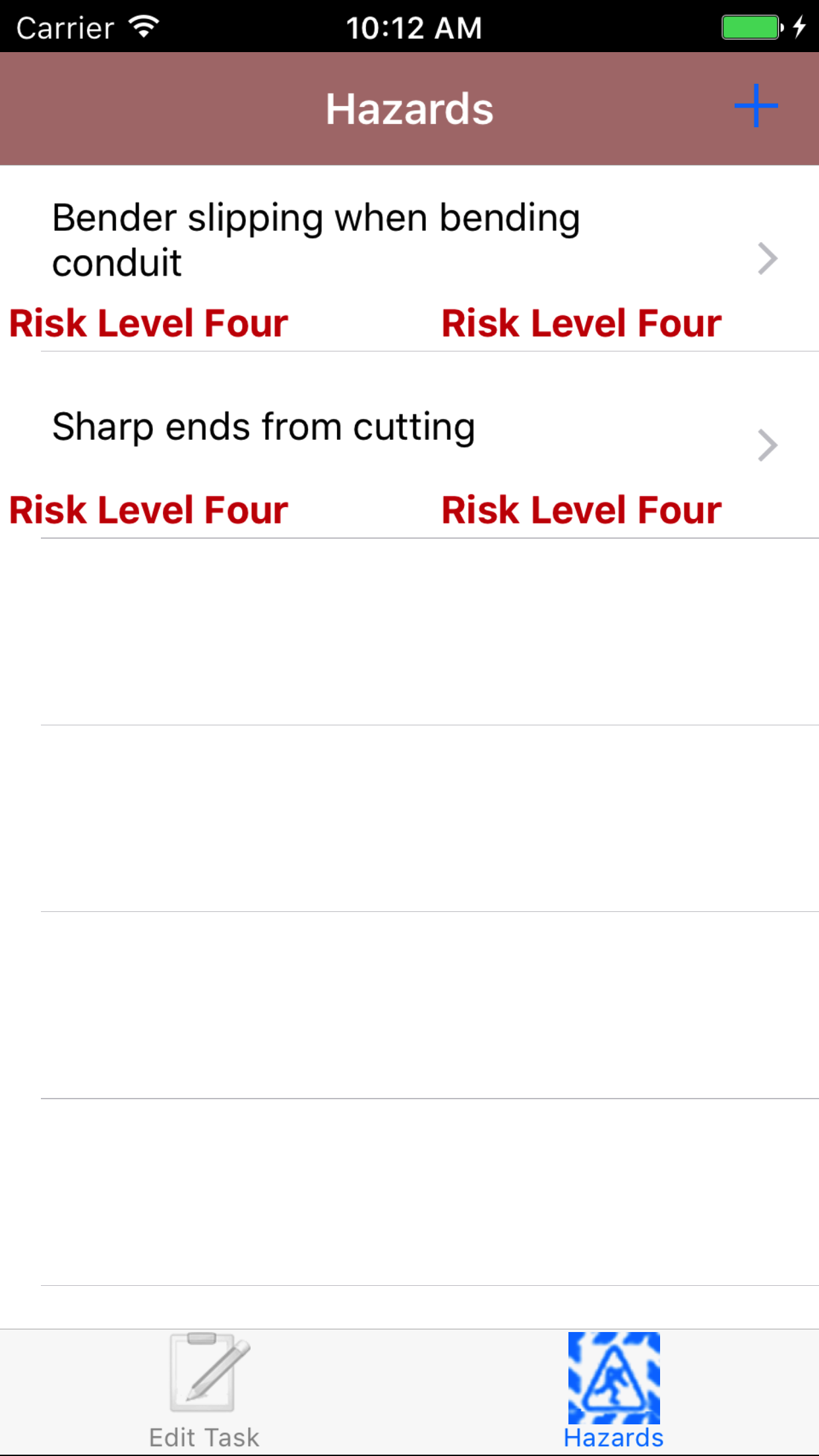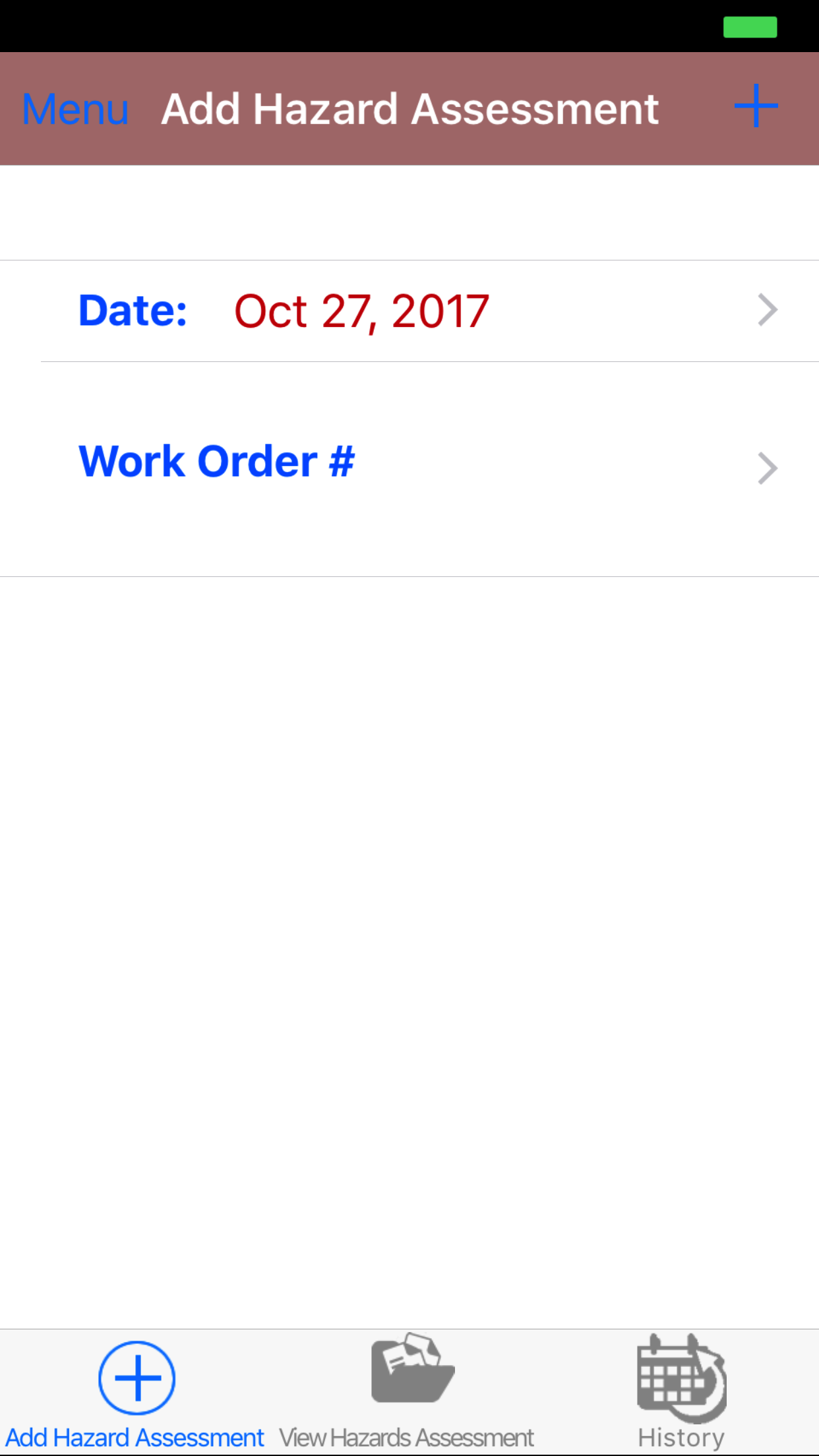 - Tap the + icon in the top right corner to add the Hazard Assessment.