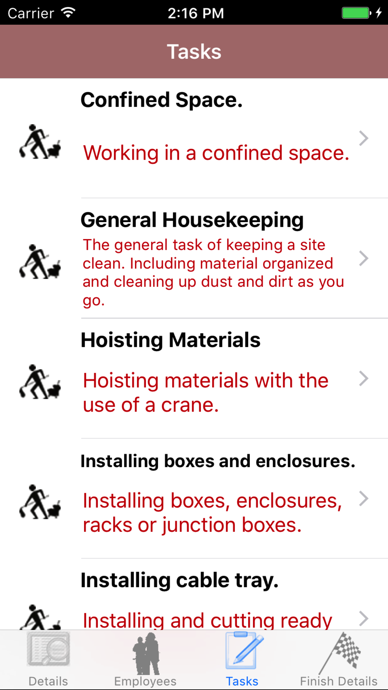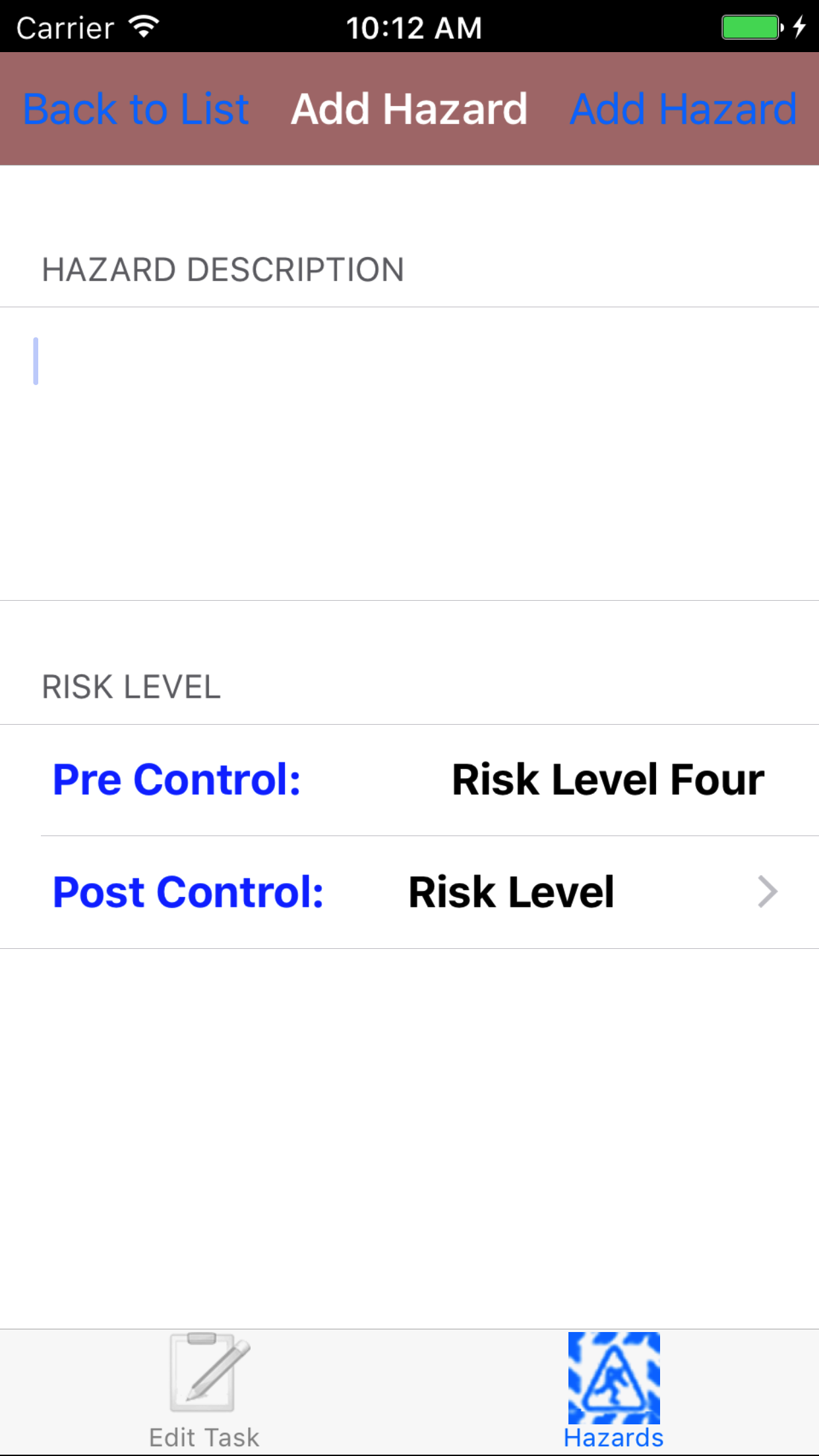 - Tap the desired task hazard to select it.