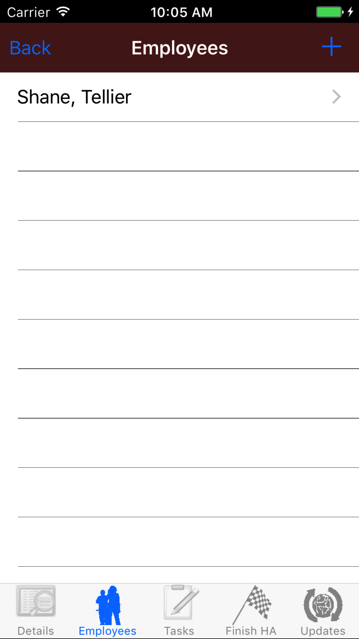 - Tap the Employee Responsible: field to open the Employees screen.