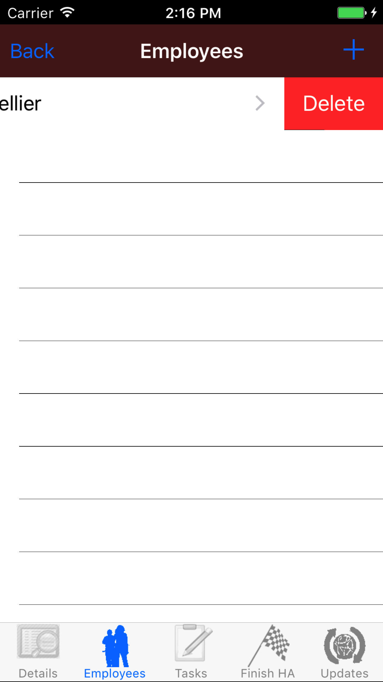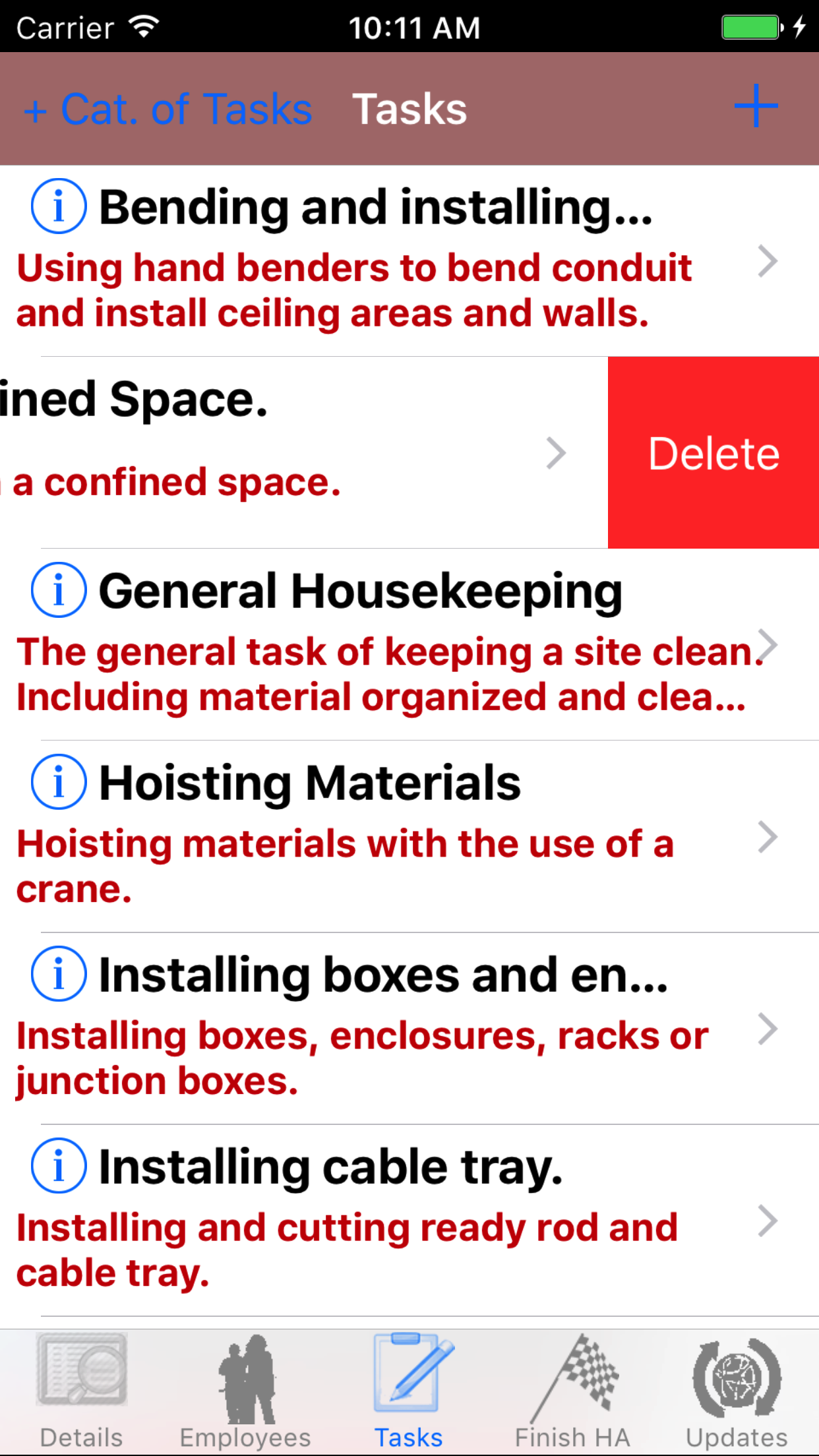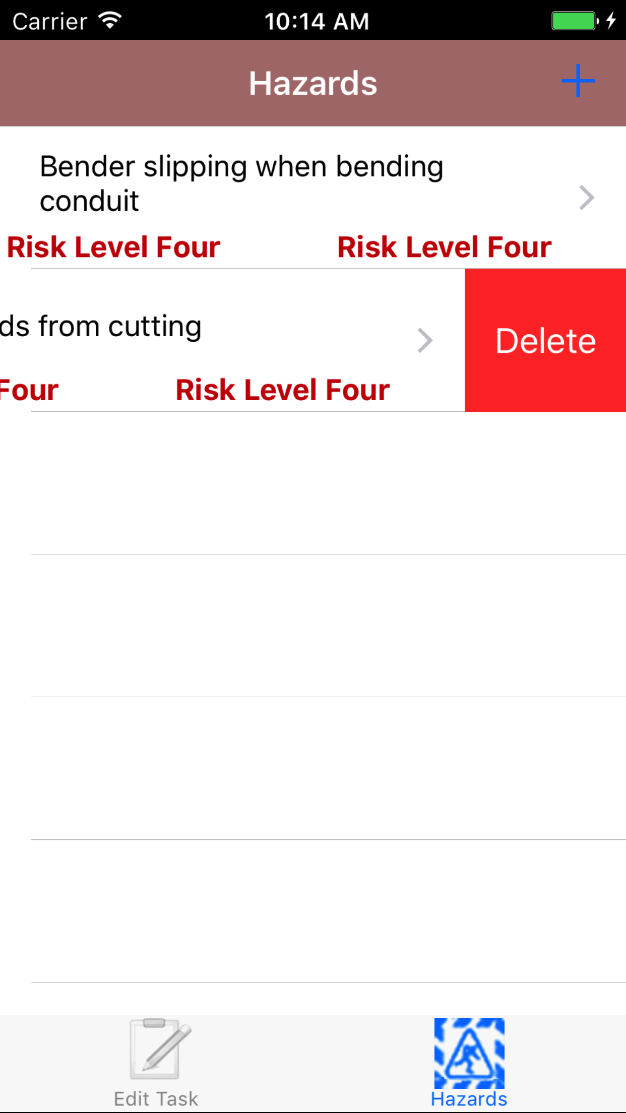 - Swipe from the right edge to the left to bring up the delete button for the task hazard.