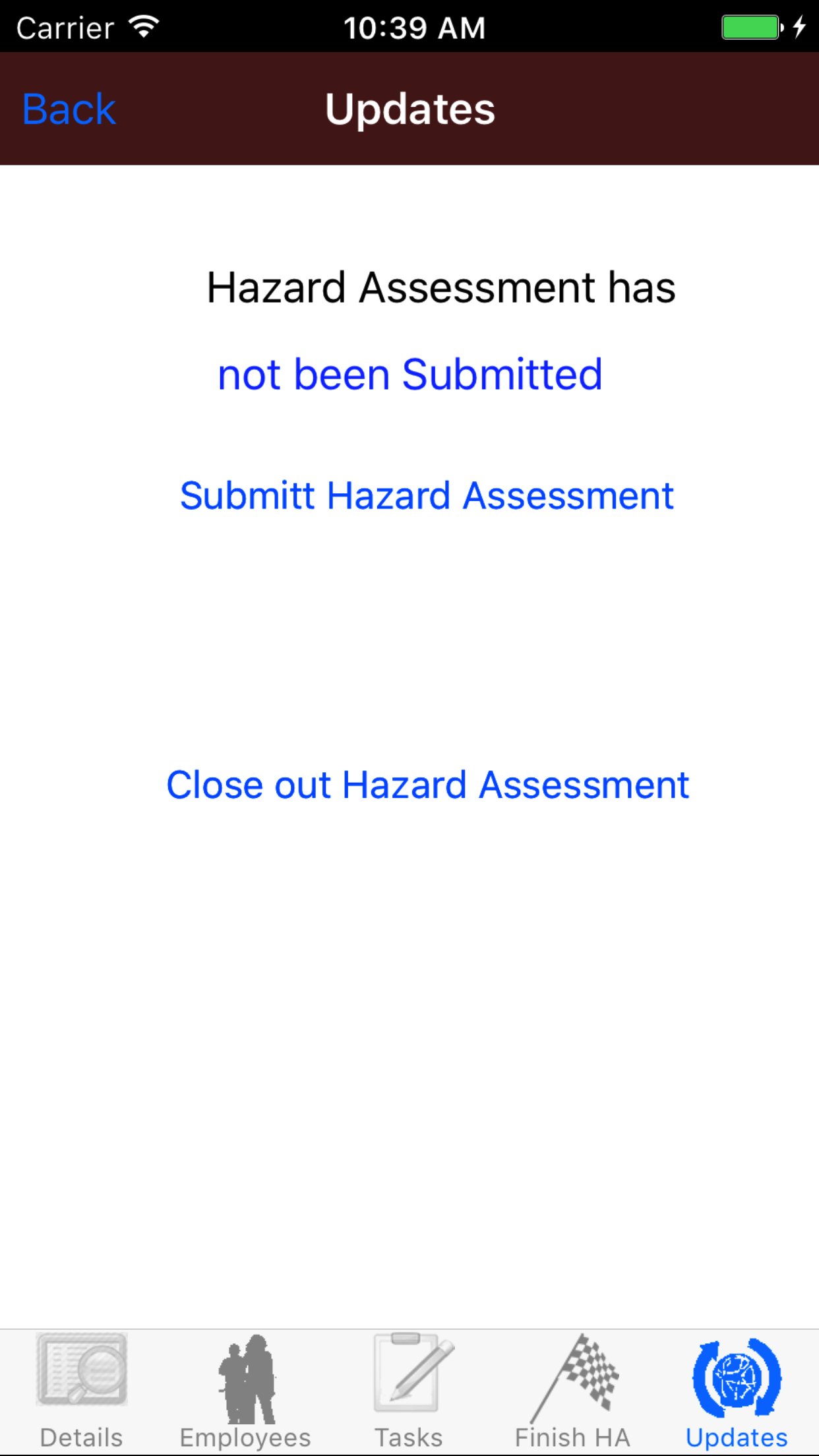 - Tap the Submit Hazard Assessment button.
