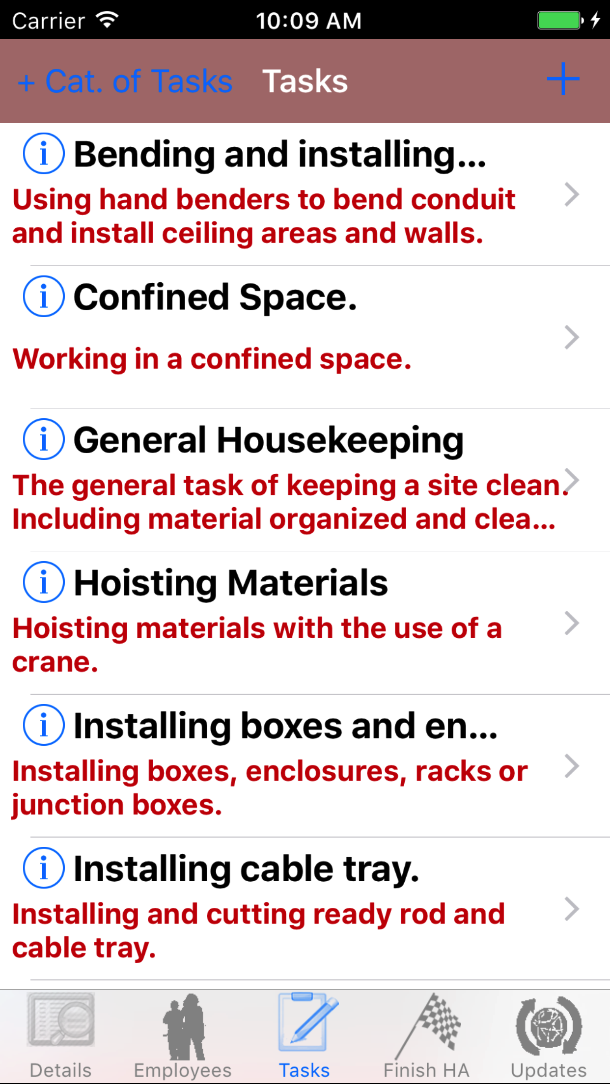 R & T Electric Pro allows companies create lists of tasks and the related hazards and plans for elimination, which are added automatically to hazard assessments when they are created.