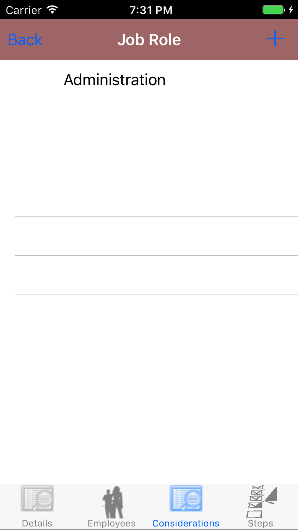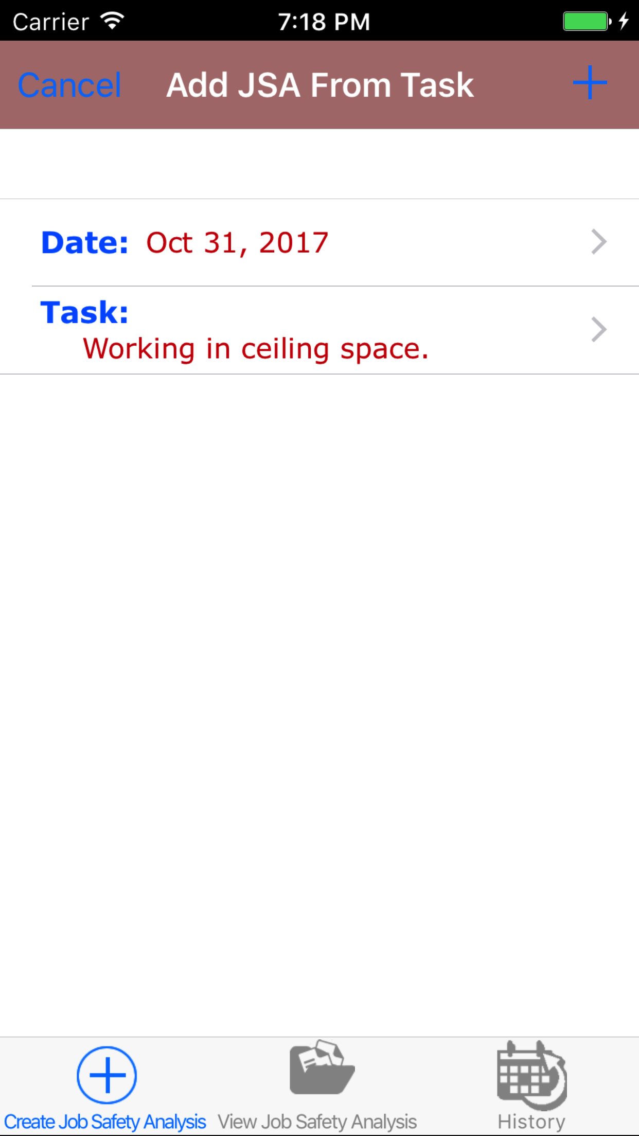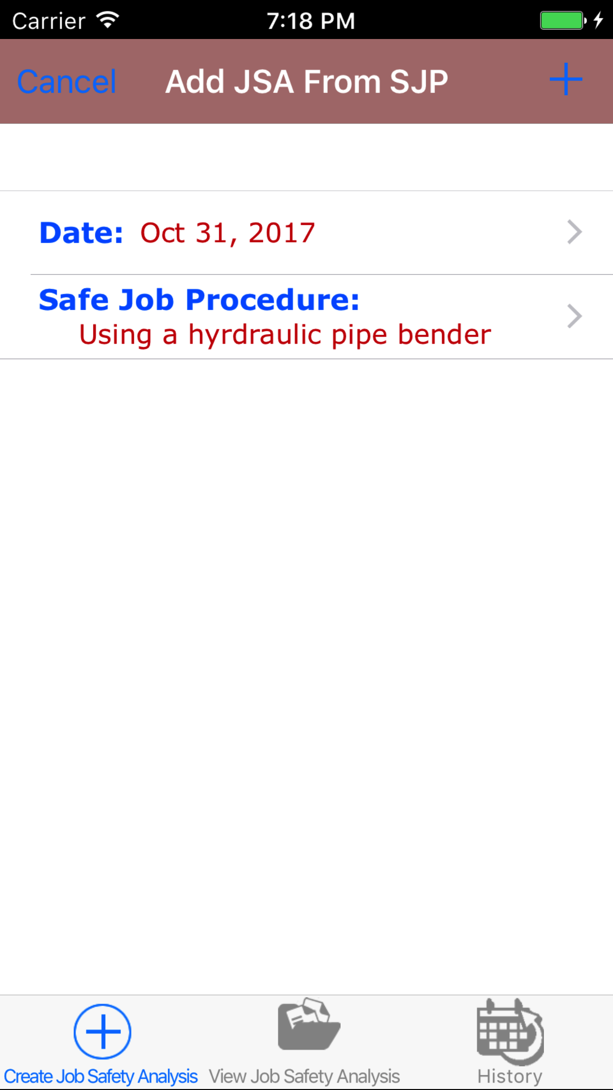 - Tap the + icon in the top right corner to add the Job Safety Analysis.