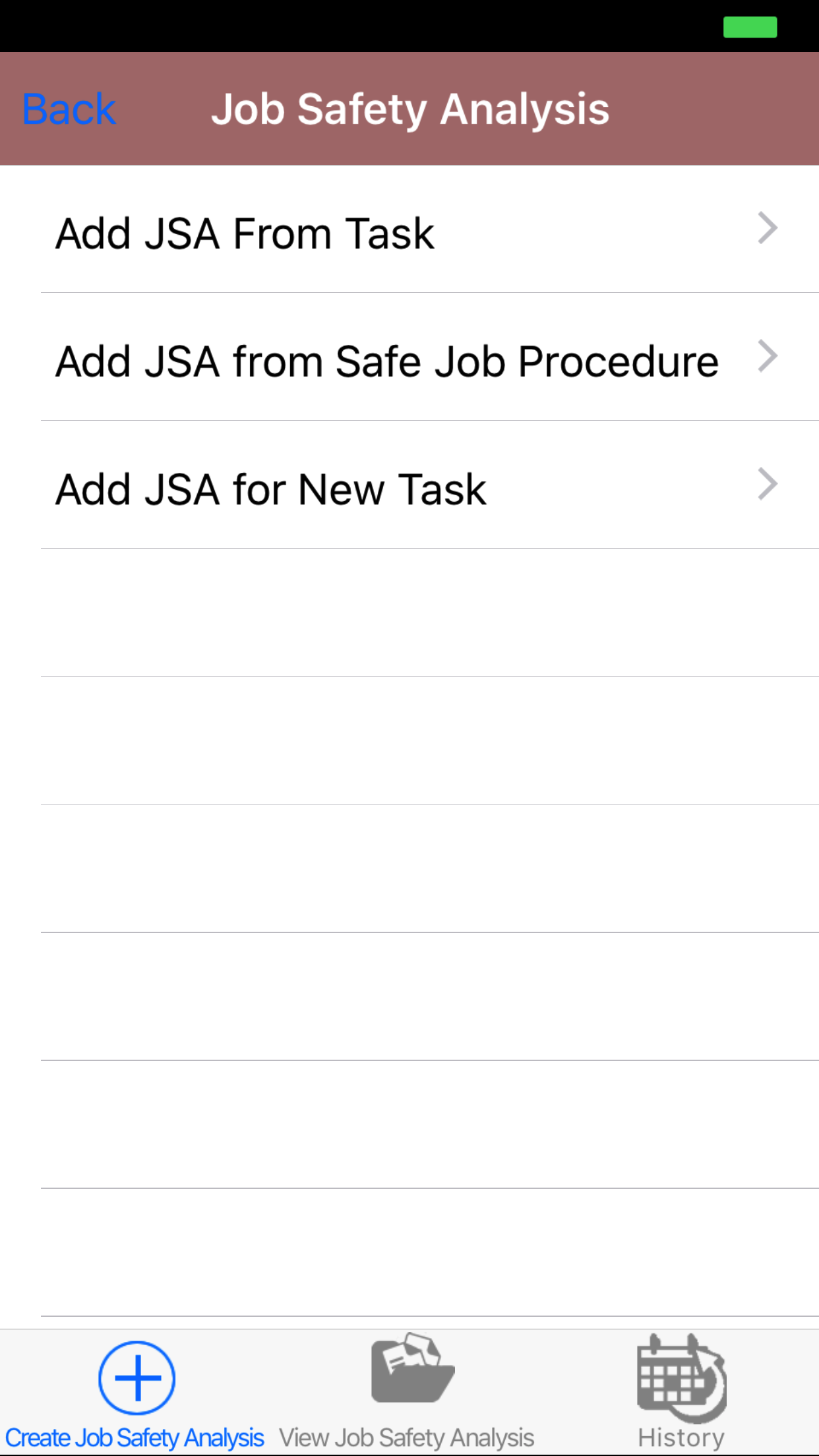 - Tap the second tab on the menu, the Job Safety Analysis view.