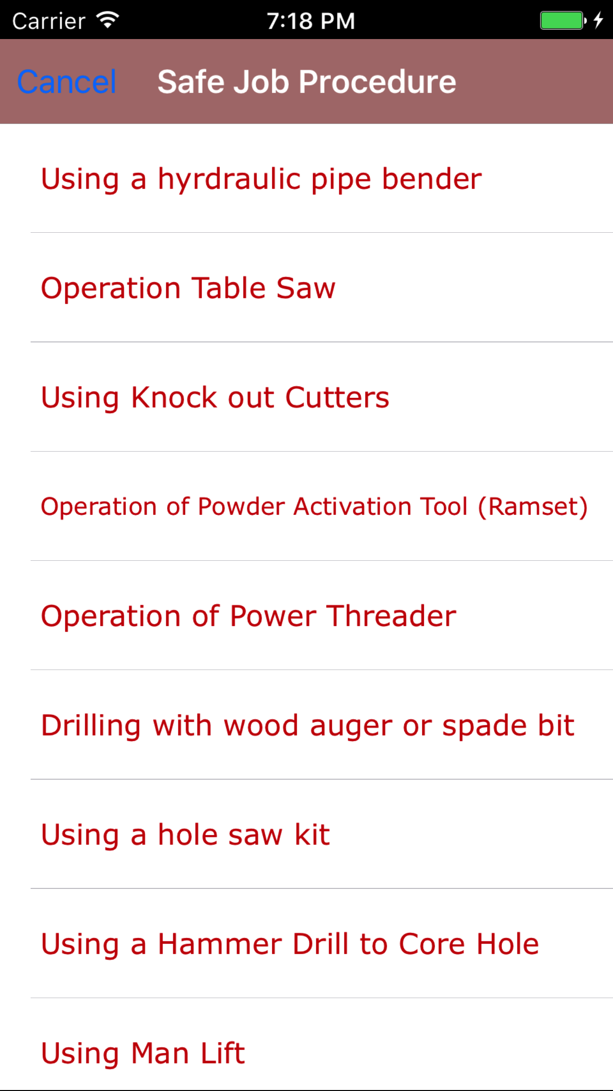 - Return to the Add Job Safety Analysis screen by either tapping Save in the top right corner to select the highlighted safe job procedure or tapping Cancel in the top left corner to leave the Safe Job Procedure field unchanged.