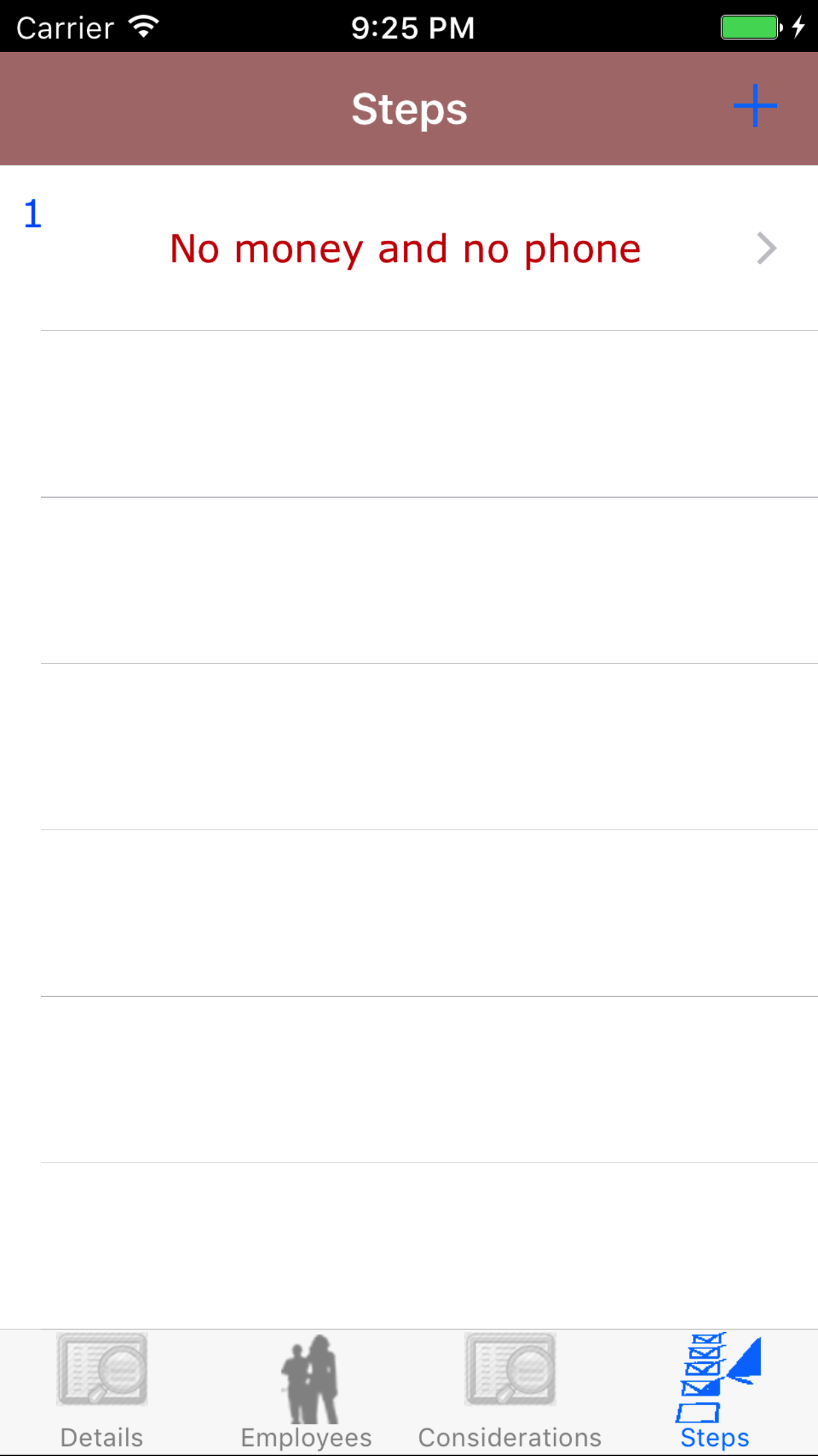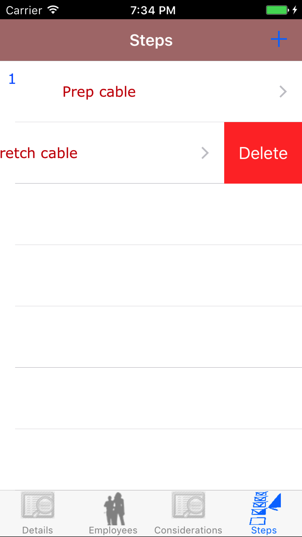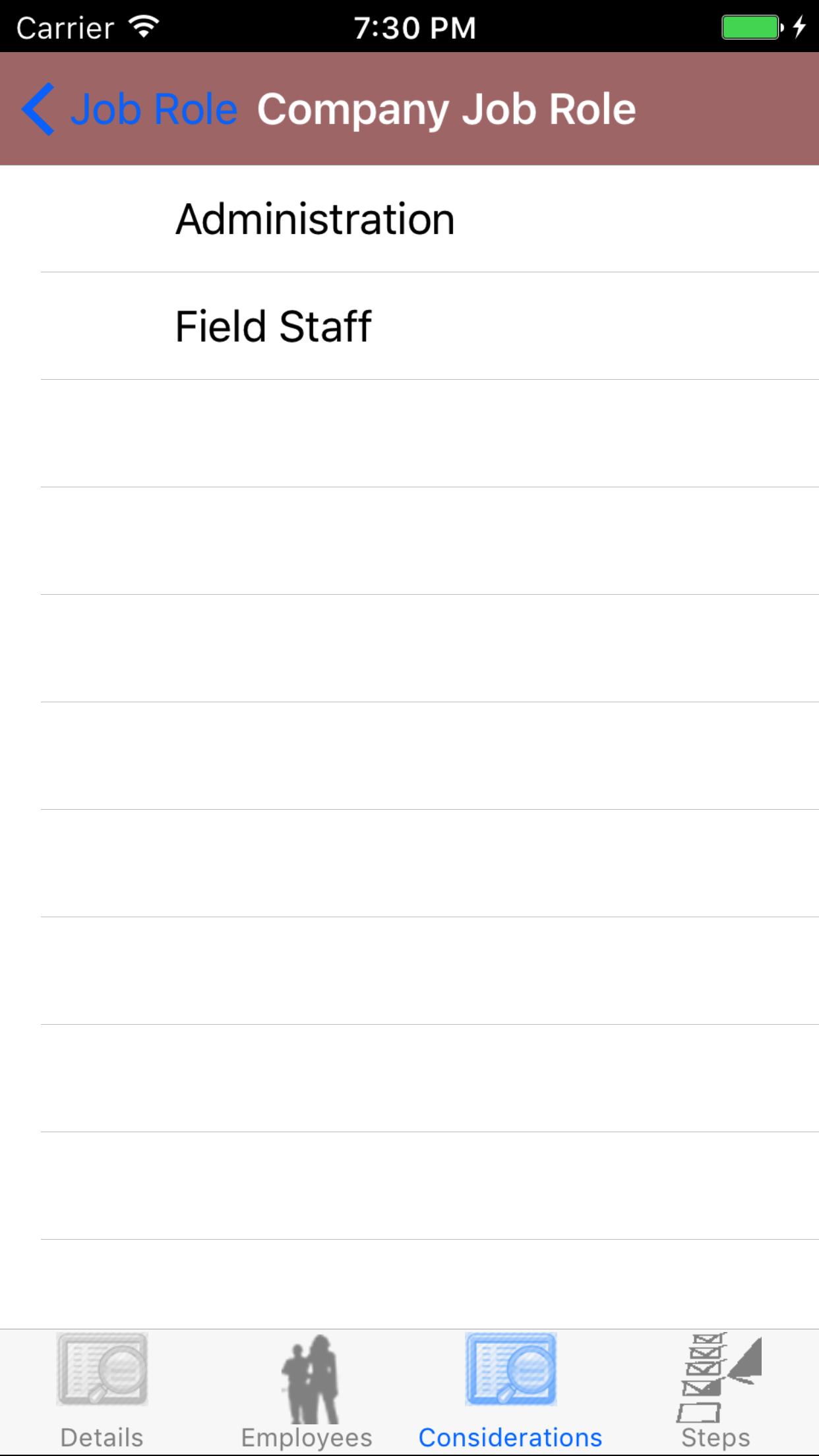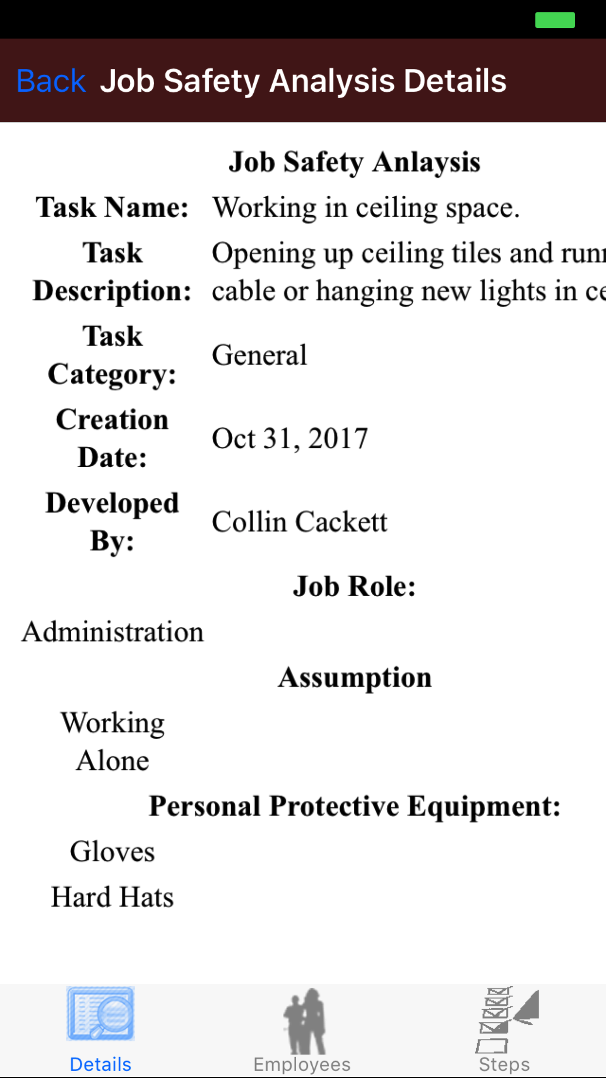 - Tap the third tab, the Steps tab of the History view. This loads the list of the Steps that were added for the Job Safety Analysis,