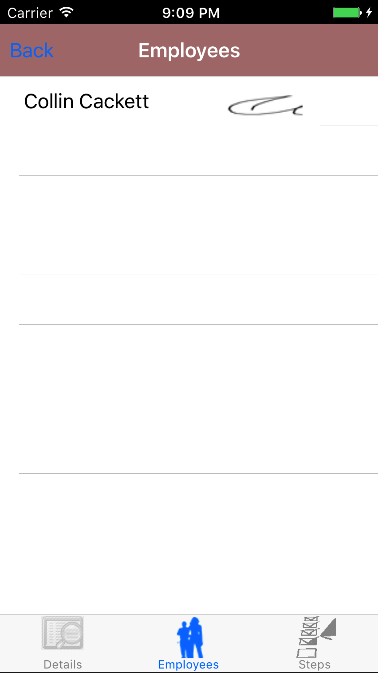 - Tap the second tab, the Employee's tab of the History view. This loads with the employee’s names and their signatures