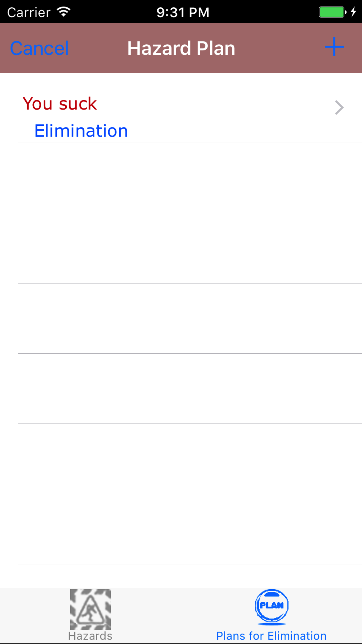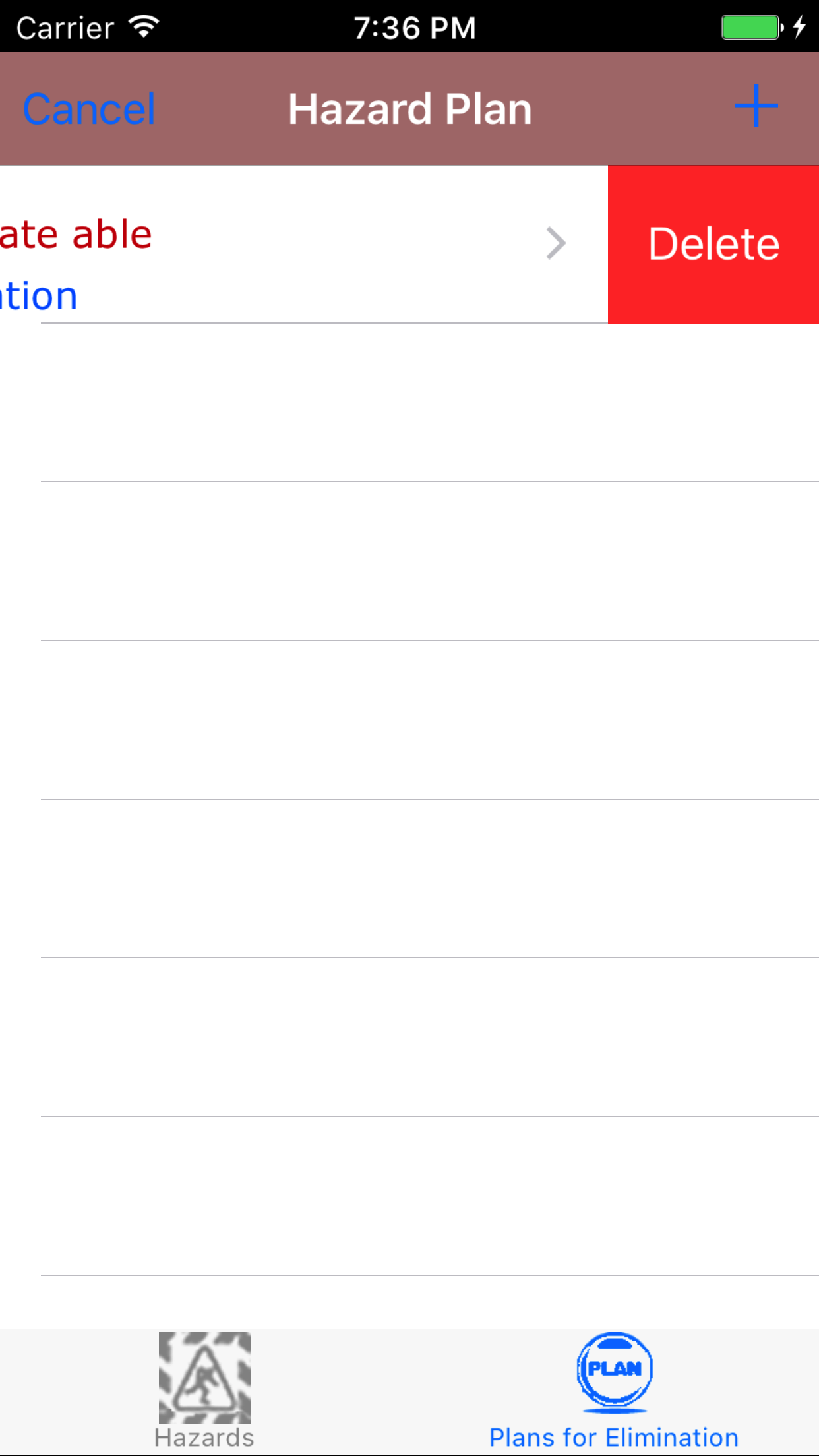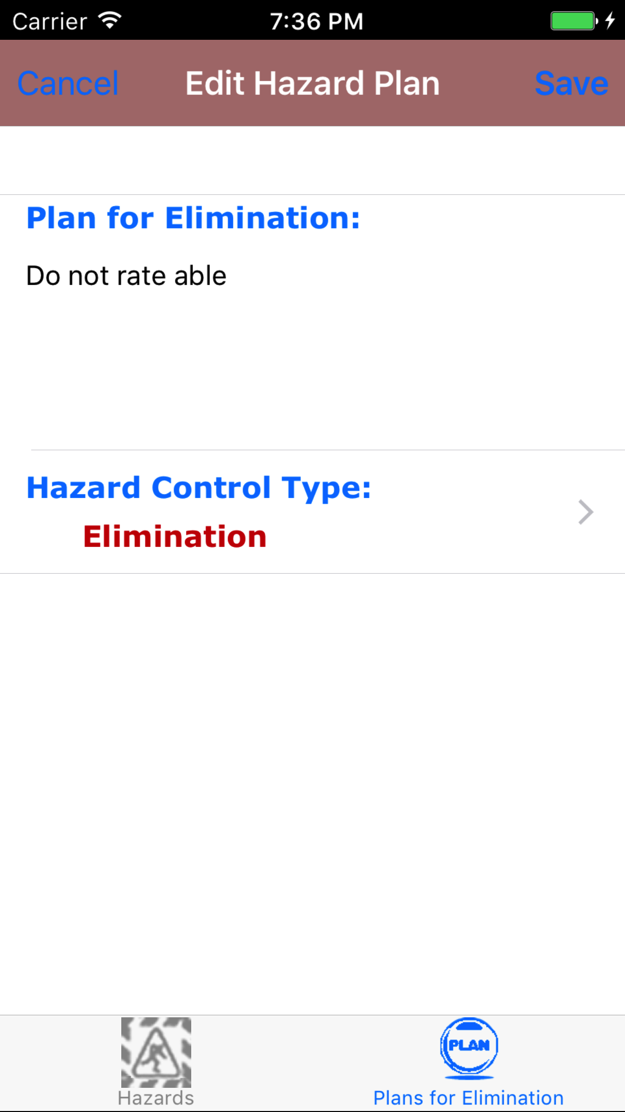 - Tap on the second tab, the plans for elimination tab of the edit task hazard view.