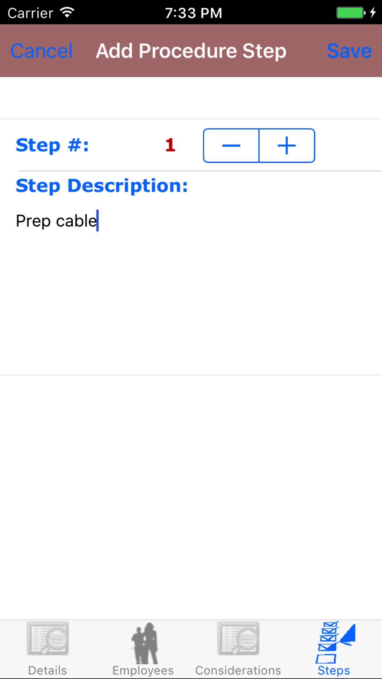 - Tap Save in the top right corner of the screen to edit the plan for elimination for the step hazard for the task.