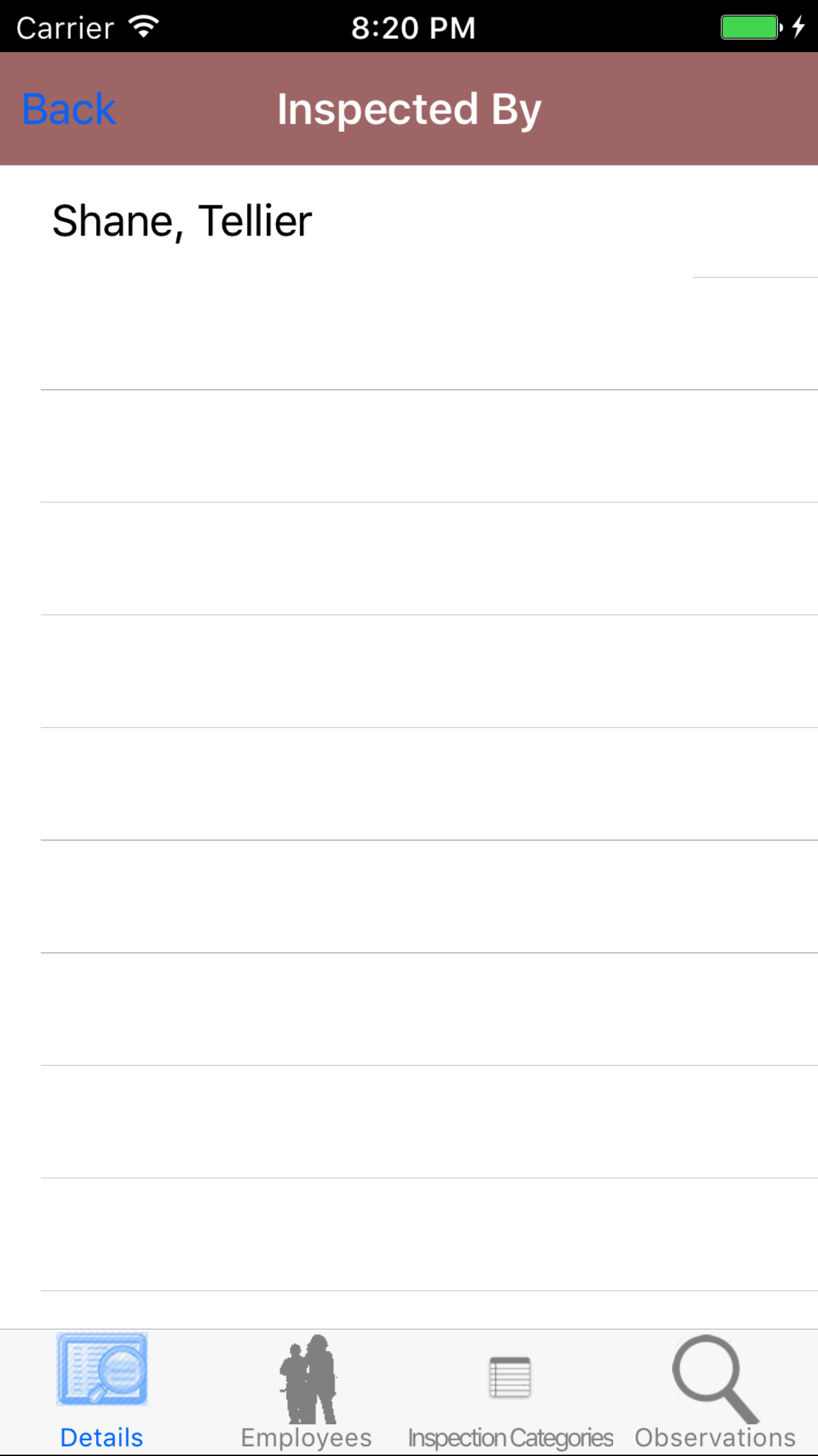 - Return to the Edit Safety Inspection screen by either tapping Save in the top right corner to select the highlighted date or tapping Cancel in the top left corner to leave the Employee field unchanged.