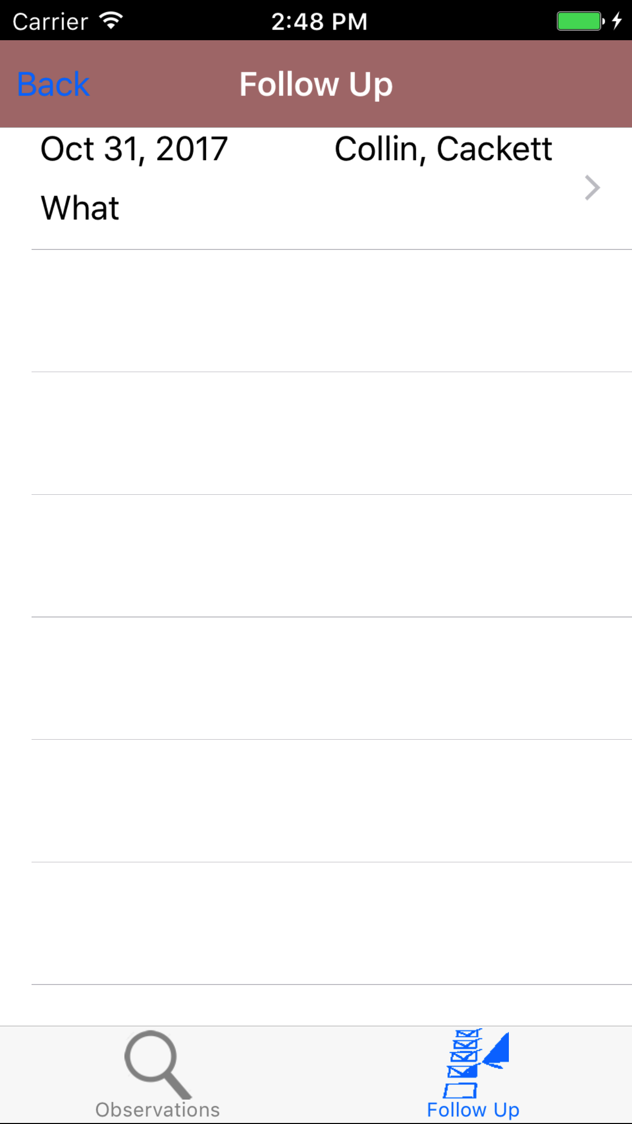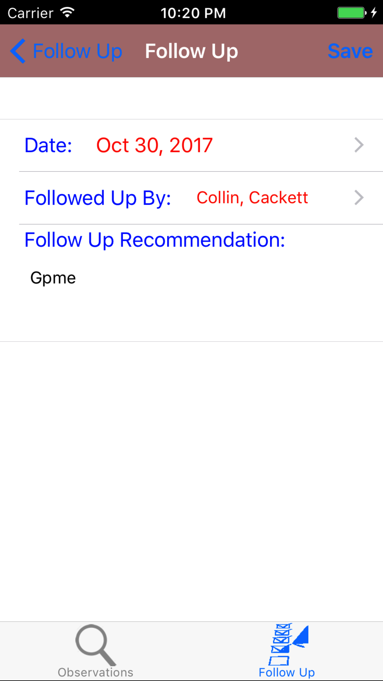- Tap on the Observations you would like to view. This loads the observation edit screen.