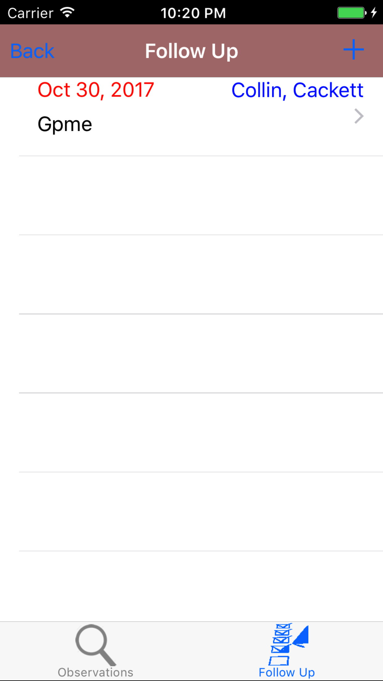 - Tap the fourth tab, the Observation tab of the History view. This loads with the observation tab, tapping on each observation will bring up the