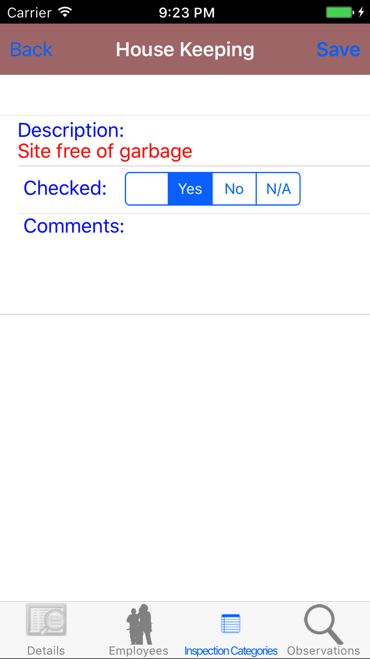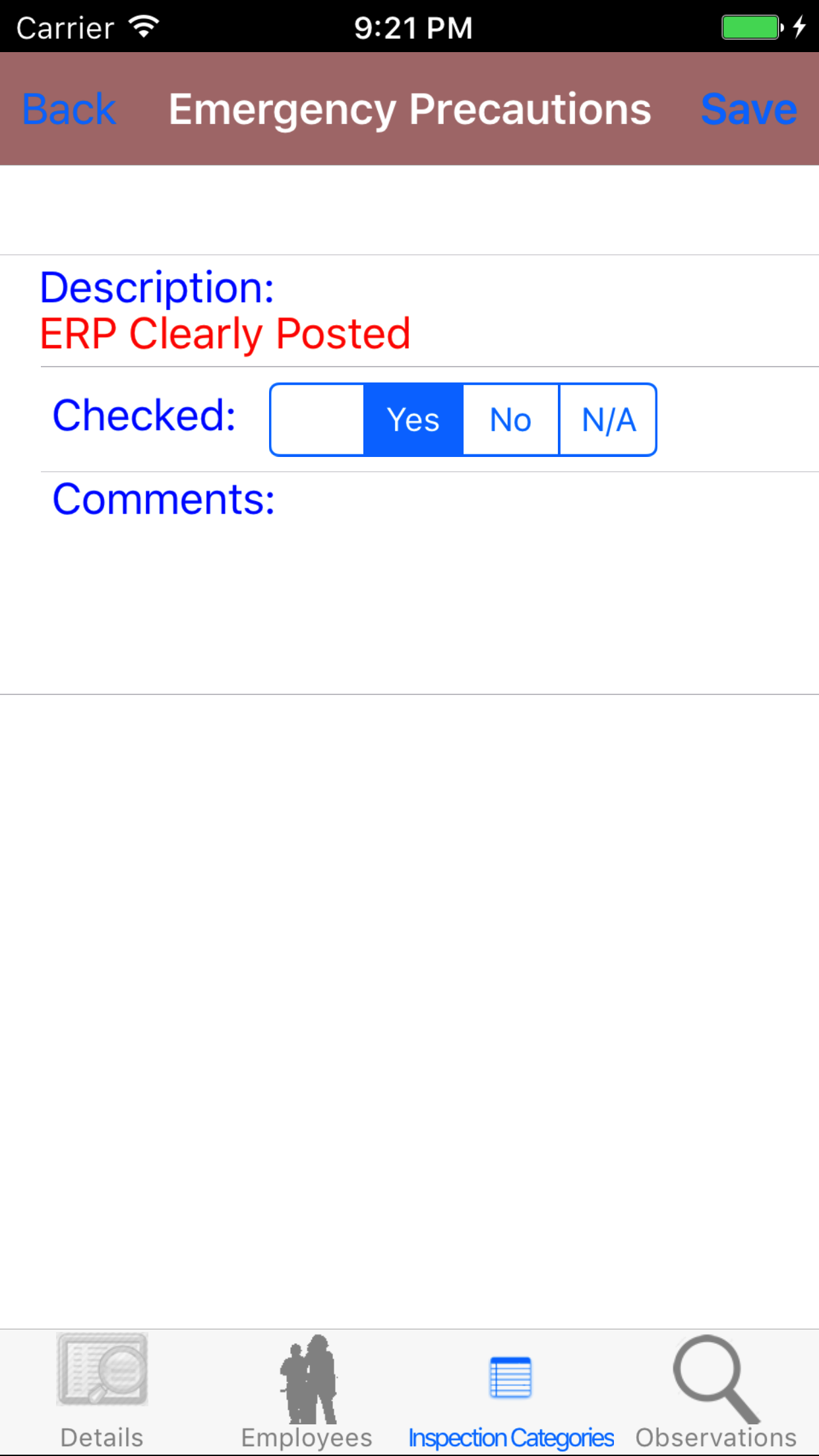 - Tap Save in the top right corner of the screen to save the safety inspection task details