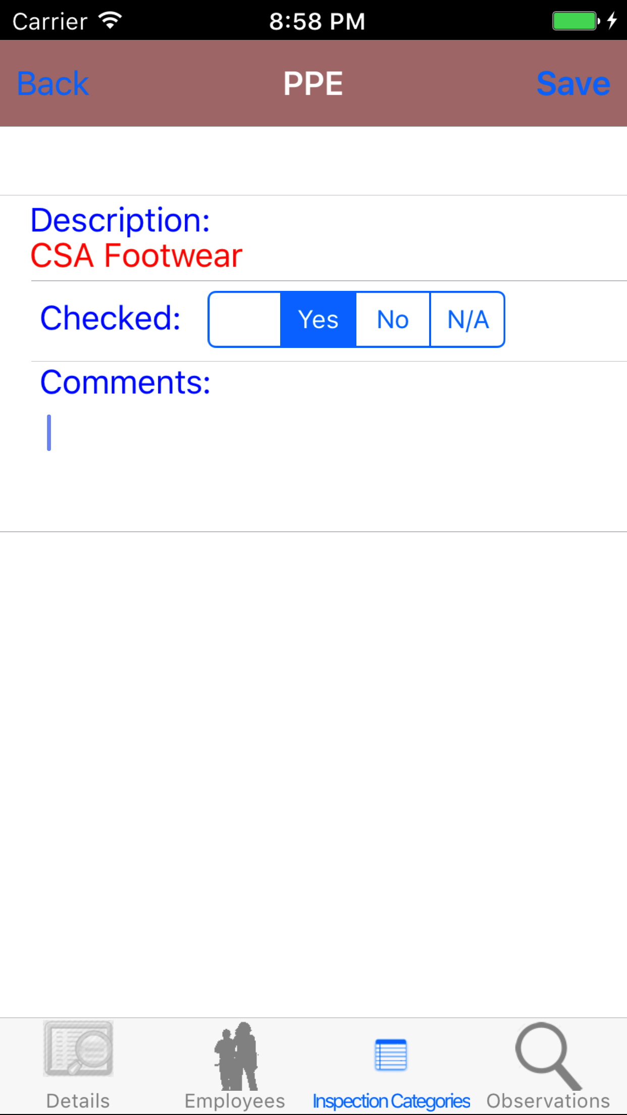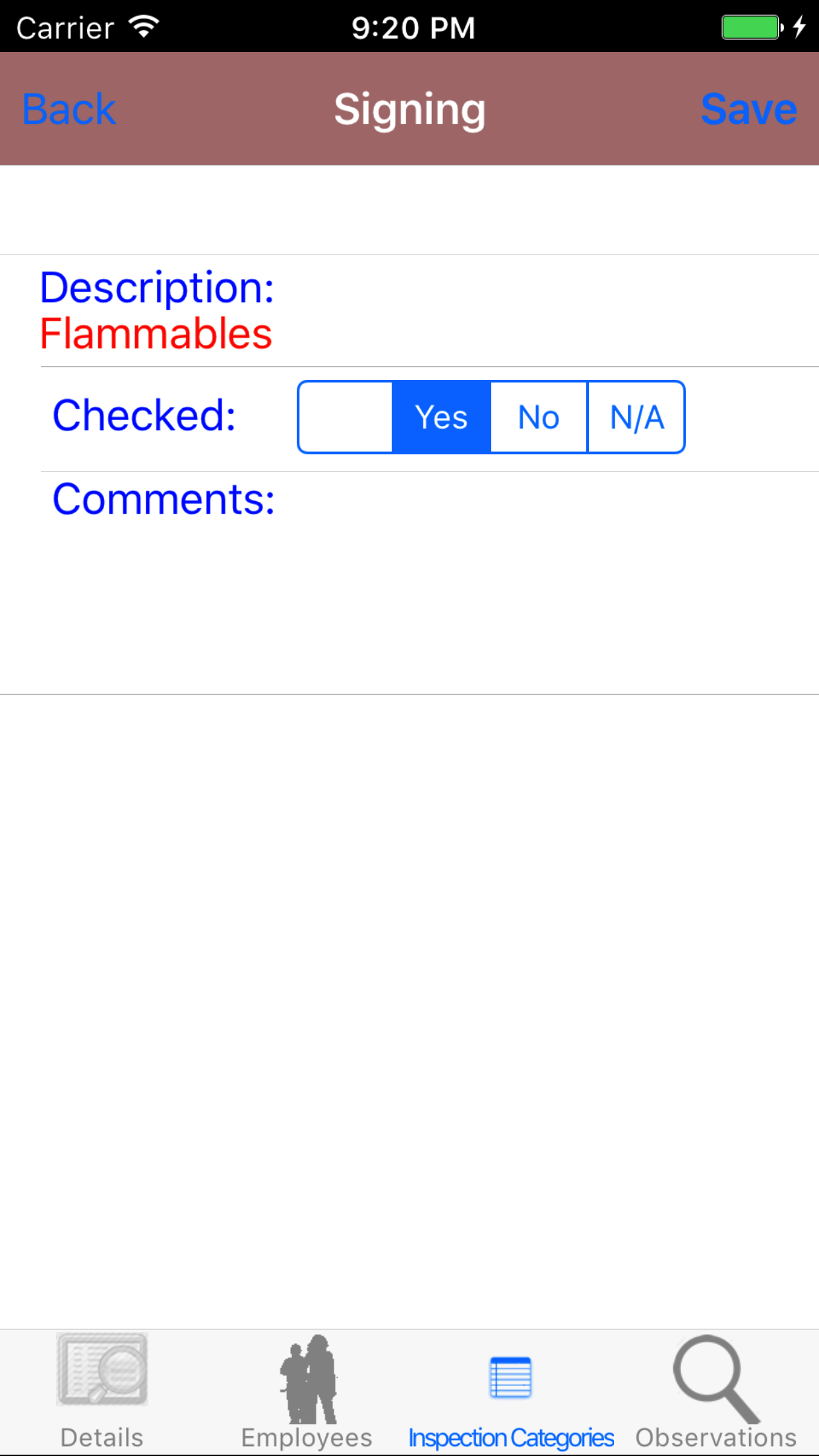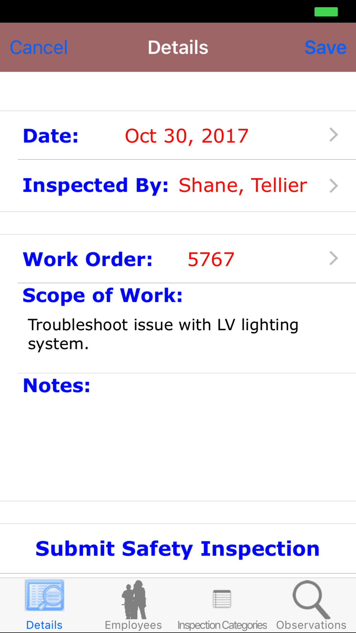 - Tap Save in the top right corner to save any changes to the Safety Inspection Details.