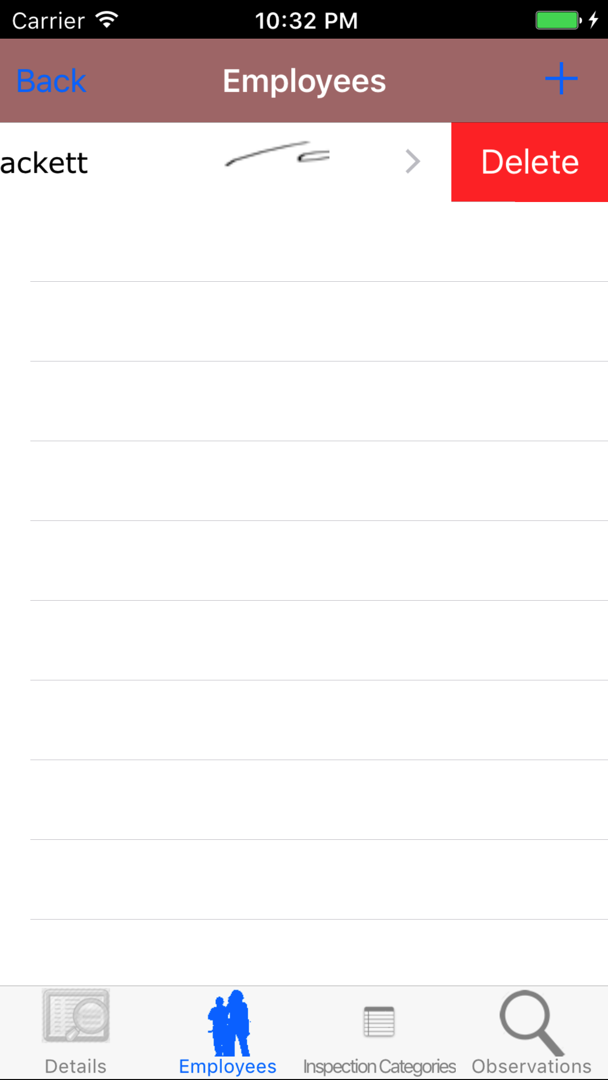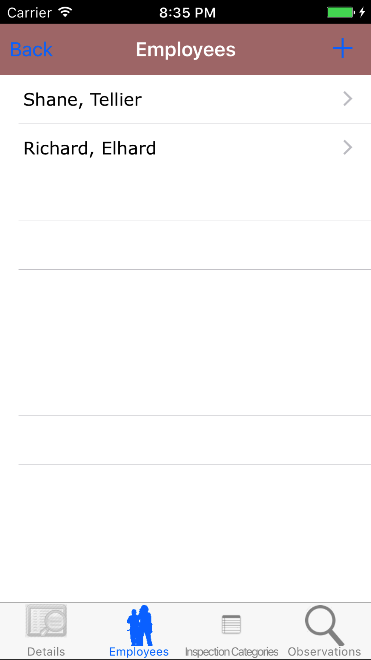 - Tap the + icon in the top right corner to open the Employees list or tap Employees in the top left corner to return to the Employees screen.