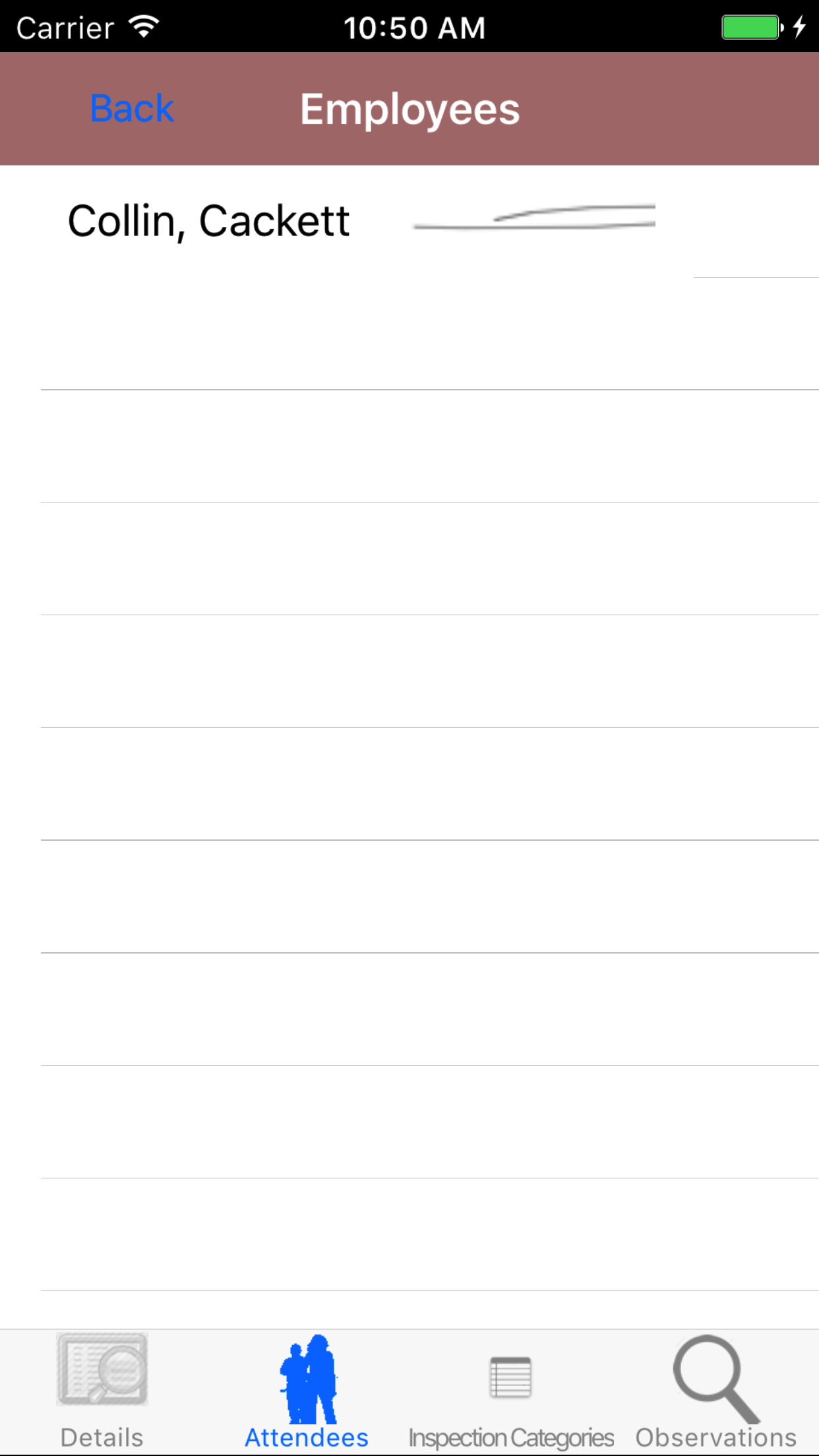 - Tap the second tab, the Employee’s tab of the History view. This loads with the employee’s names and their signatures