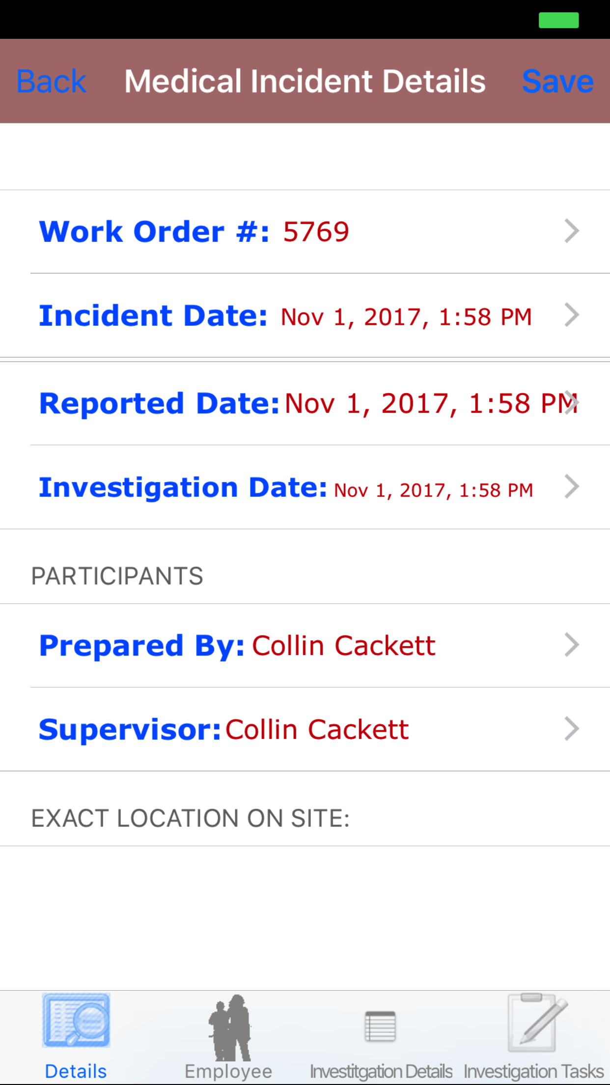 - Tap Save in the top right corner to save any changes to the Safety Investigation Details.