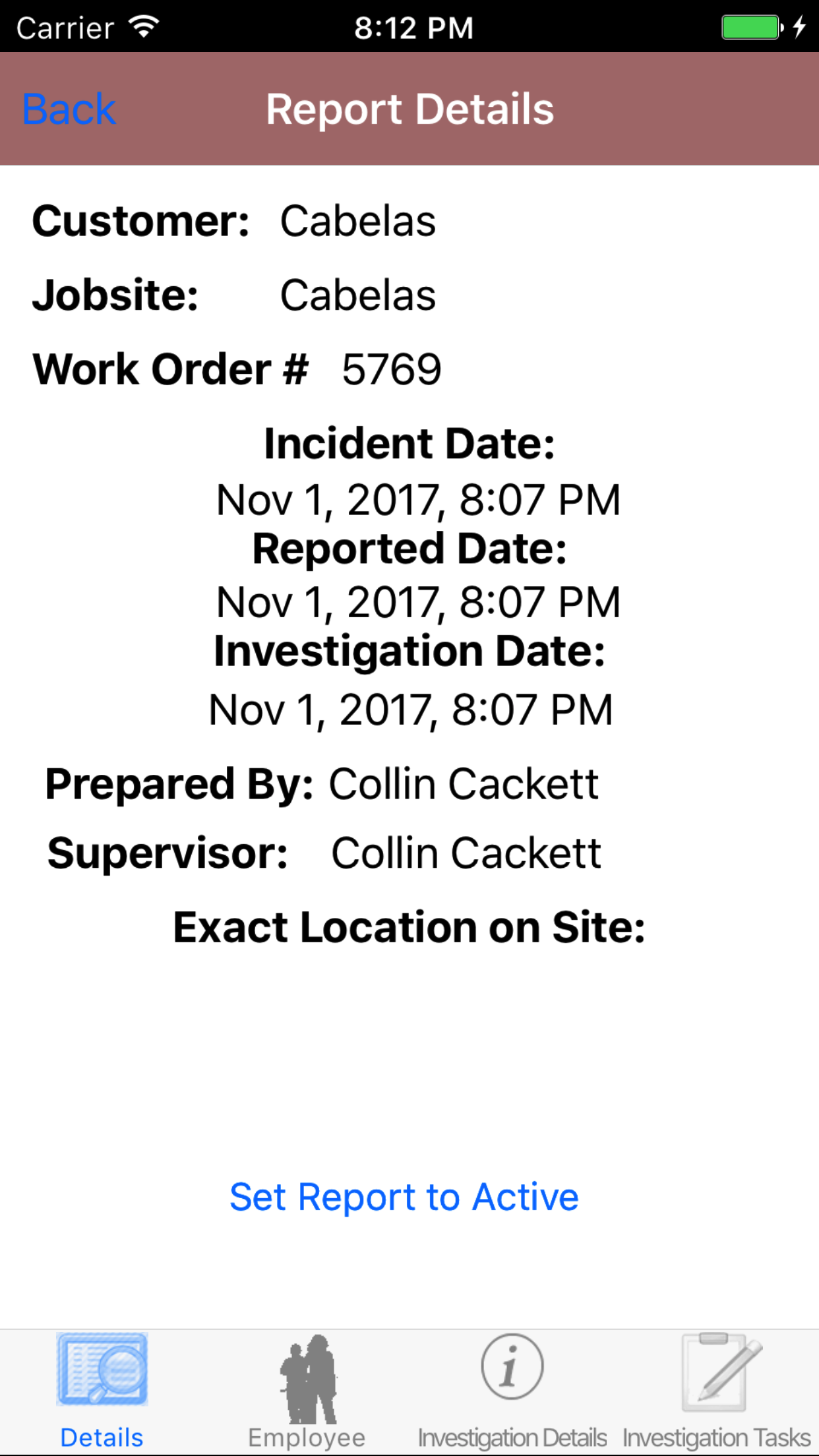 - Prepared By: The inspected by field initialy displays the name of the person who added the Safety Investigation and should be updated to indicate the employee whom prepared the safety investigation report.