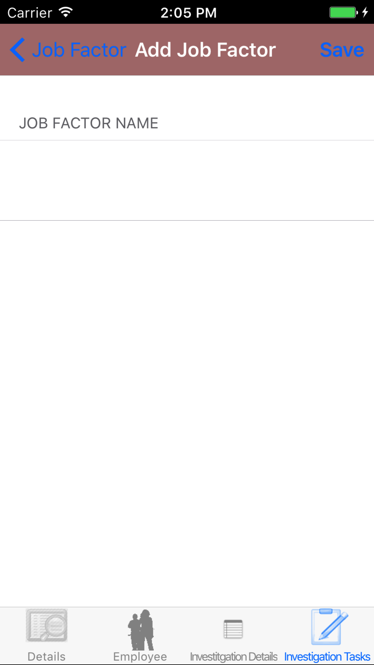 - Return to the Edit Safety Investigation screen by either tapping Save in the top right corner to select the highlighted date or tapping Cancel in the top left corner to leave the Employee field unchanged.
