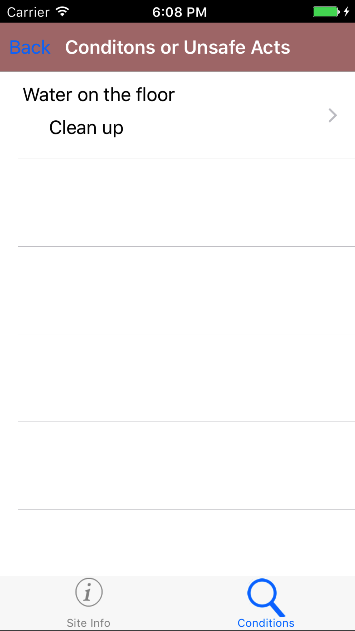 - Tap on the second tab, the Conditions Found icon at the bottom of the screen to open the Conditions Found screen. The screen loads with the list